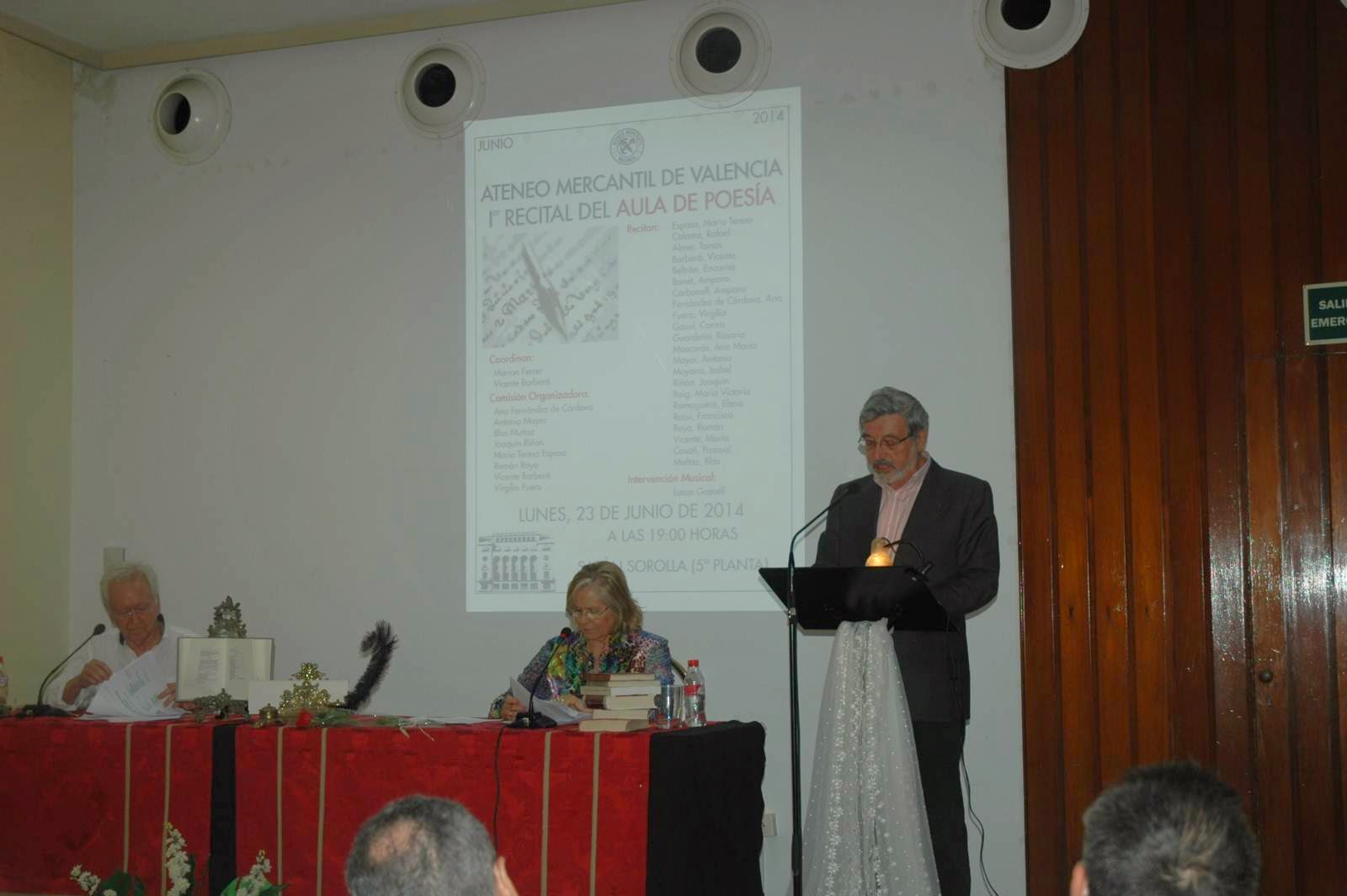 Comenzó con unas palabras de Vicente Gomar, miembro de la Comisión de Cultura del Ateneo, que instó a los presentes a trabajar en el campo de la poesía y agradeció la iniciativa del primer recital.