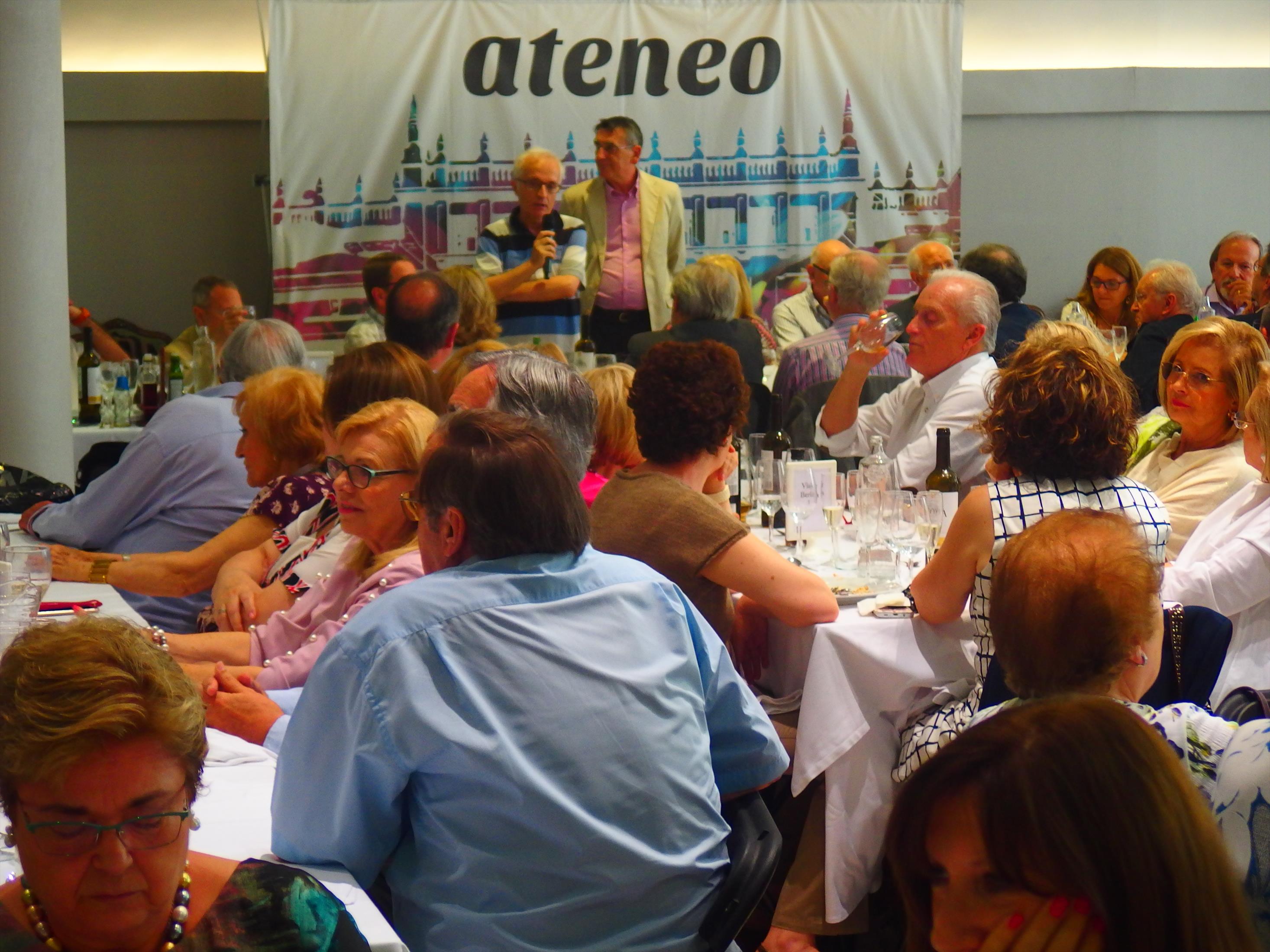 La cultura en el Ateneo Mercantil está en uno de los mejores momentos de los últimos años como bien se pudo comprobar en la comida que sirivió de colofón y de fin de curso del Aula Cultural, de los diferentes ciclos y foros, de las conferencias ateneístas, las clases de idiomas, los viajes, los distintos clubes como el de gastronomía, los cuatro de lectura, de poesía, las clases de filosofía, la tertulia taurina... Una comida que sirvió, además, para comprobar el gran ambiente de amistad y de confraternidad existente entre todos los socios y amigos que disfrutan a lo largo del año de todas las actividades culturale ateneístas.