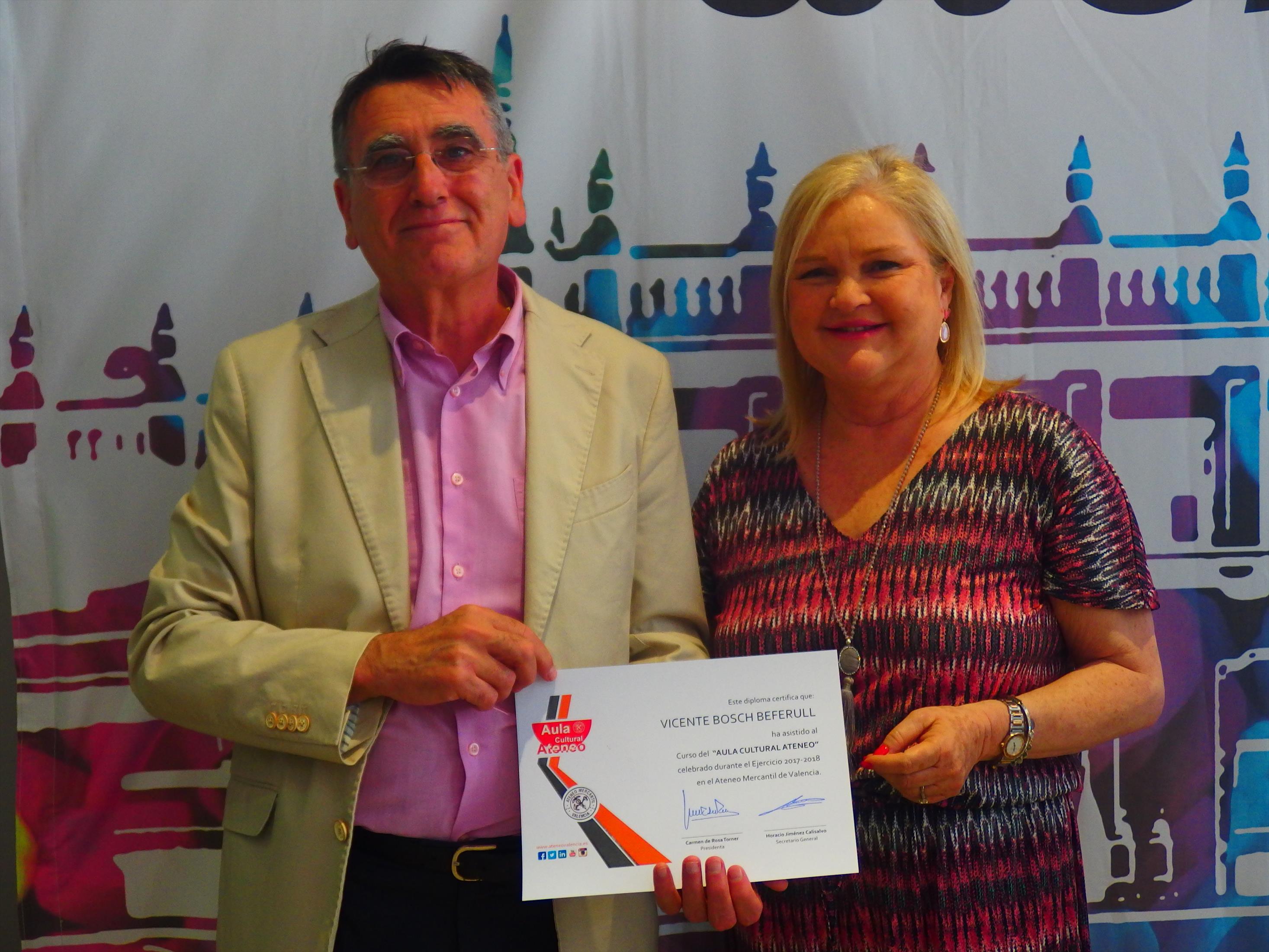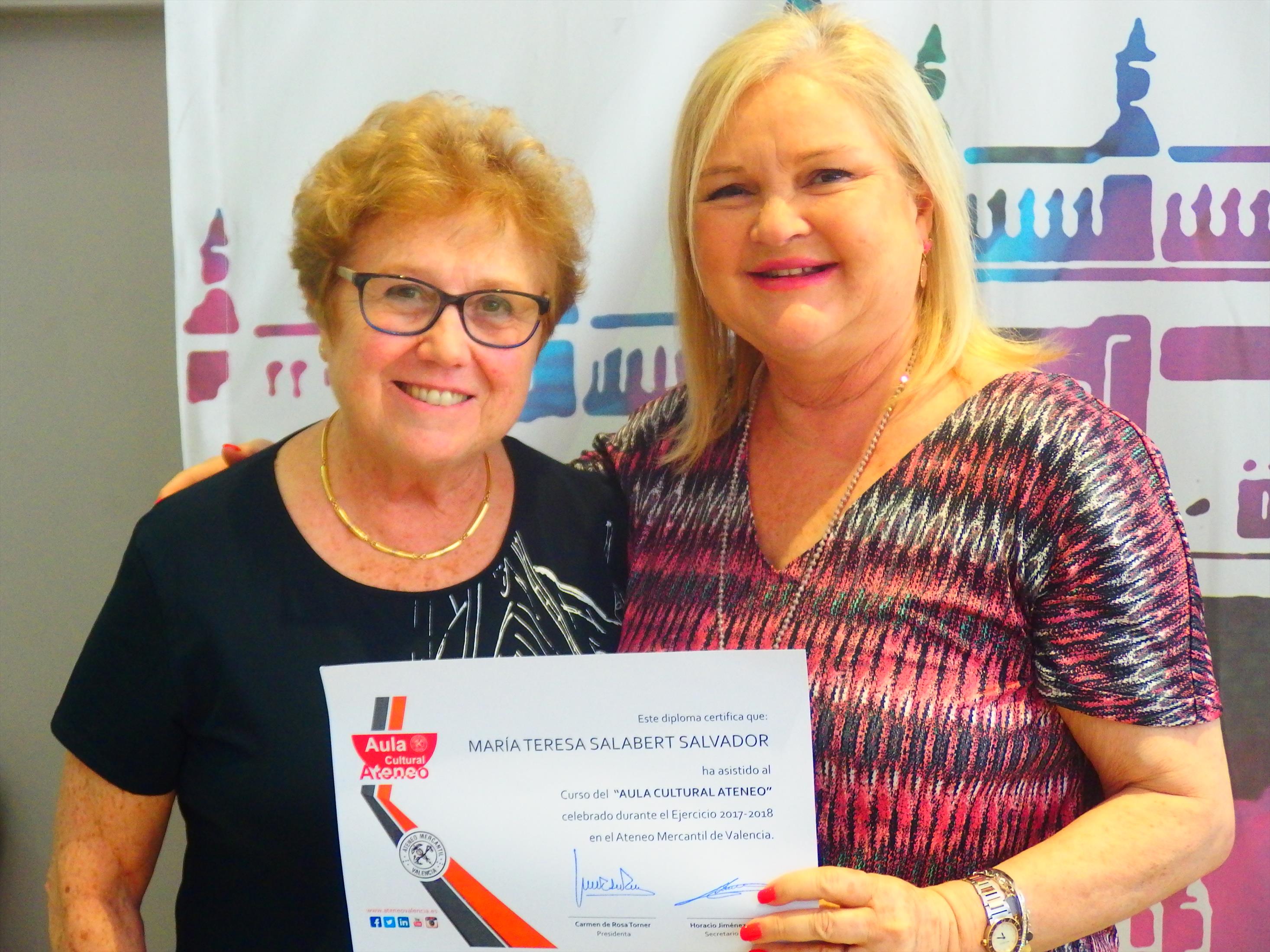 Más de 260 personas se reunieron en el Salón Noble del Ateneo, entre alumnos y profesores, entre ponentes y socios que habitualmente asistentes a las conferencias. Además, en la parte final de la comida también se hicieron entrega de los diplomas a todos los alumnos que han cursado este año el Aula Cultural. La jornada arrancó muy pronto, a las 11.00 horas con una doble visita a la Fundación Bancaja para disfrutar de dos grandes exposiciones como fueron ‘Yo soy el Pan de la Vida’ de Sorolla y ‘Carácter y emoción’ de Zuloaga. Tras esta visita llegó la comida y de esta manera se dio por concluido el año de las Actividades y Visitas Culturales. La jornada terminó con una conferencia en el Salón Sorolla por parte del Doctor en Hª del Arte por la UV y Académico de la Real Academia de Bellas Artes de San Carlos de Valencia, D. Salvador Aldana.