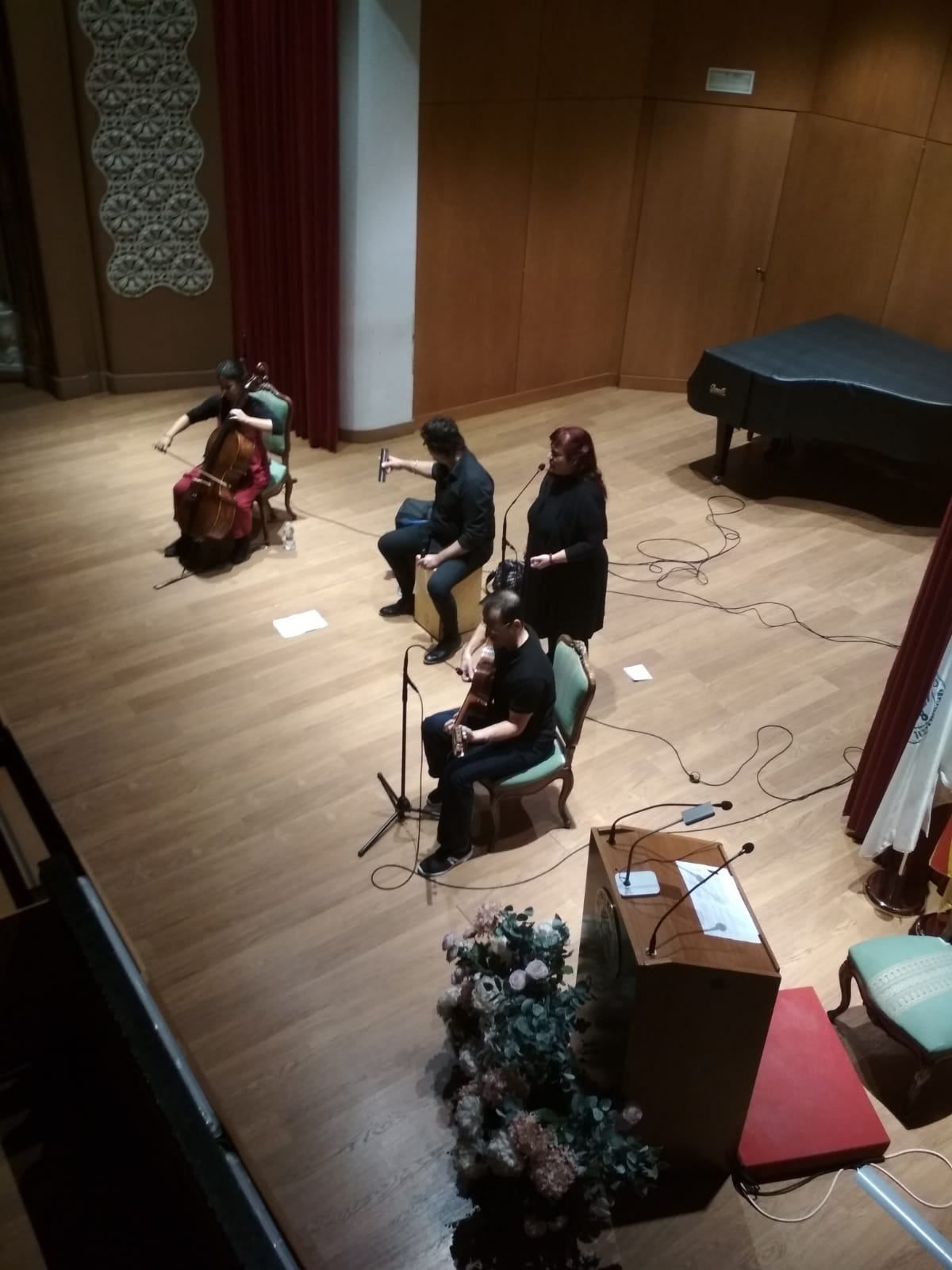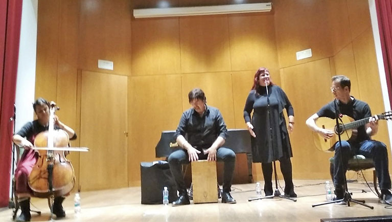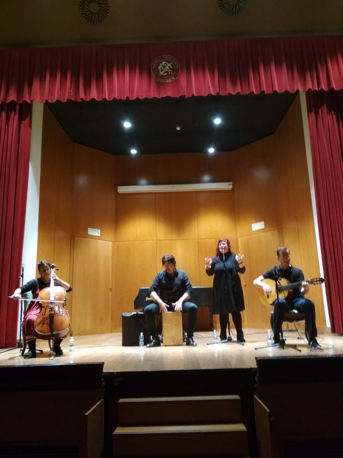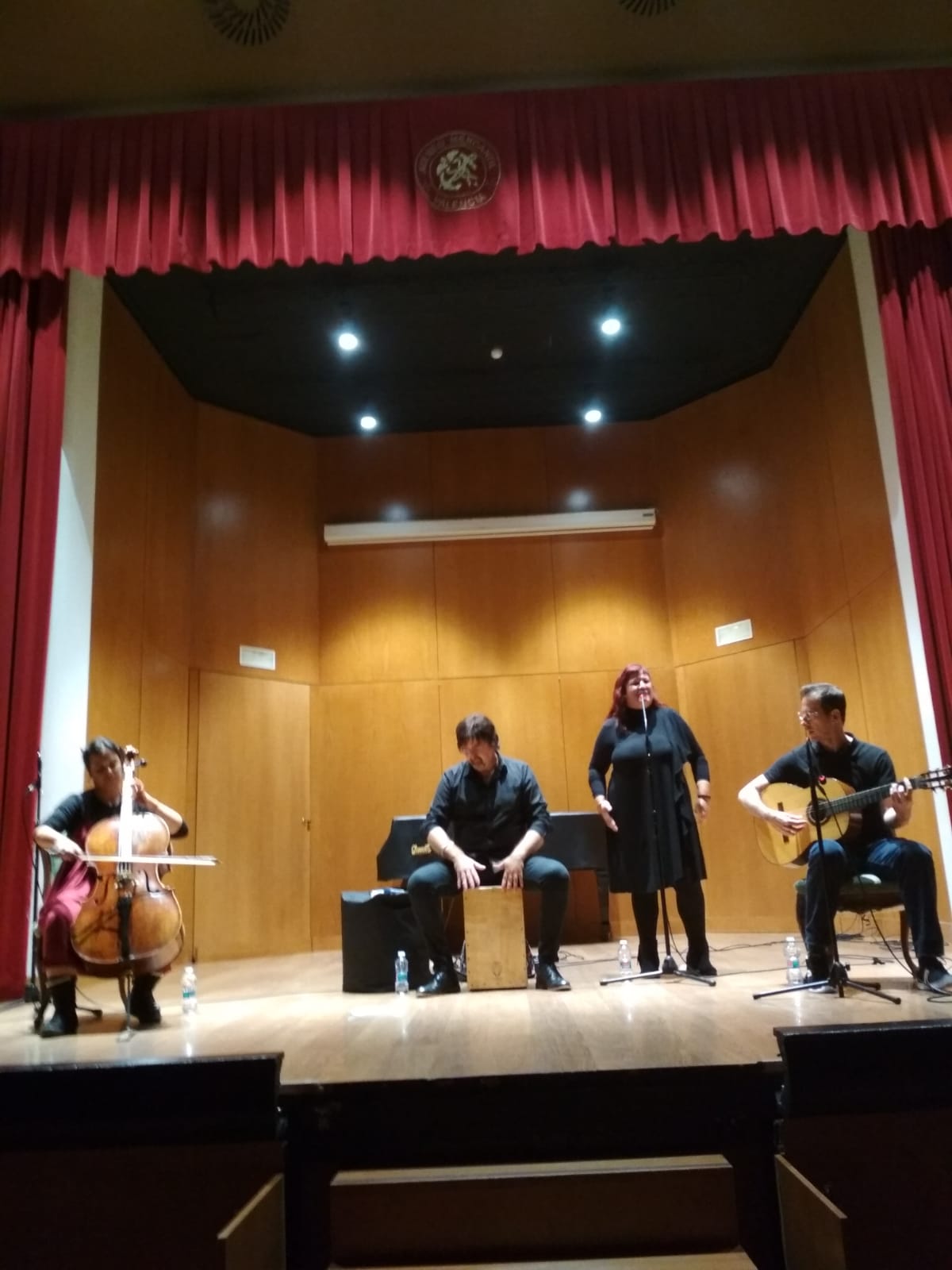 Gran concierto de La Caleta 'Ora Marítima' este pasado domingo 11 de noviembre en el Ateneo Mercantil de Valencia. En 'Pleamar' se pudo encontrar trazos flamencos, algo de bossa nova, retales jazzísticos, latinos, andinos o folk. Todo ellos piezas originales que forman una alquimia sonora de lo que han escuchado, vivenciado y sentido musicalmente Javier Carreira (guitarra), Laura Carrasco (violonchelo) , Agustín Torres al cajón y la percusión y Rosa Seco como voz que va hilando los temas, enlazándolos a través de poesías que introducen cada una de las piezas.