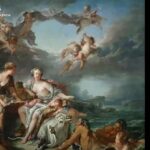 El Barroco tardío, a menudo llamado Rococó, es ejemplificado por François Boucher, quien se destaca por su tratamiento de la luz y los detalles en sus obras. Boucher aborda una variedad de temas, desde escenas familiares hasta mitológicas, y sus obras se conservan en importantes museos como el Louvre y el Hermitage. La "Escena Pastoral" y "El Dios Mercurio y las Ninfas" son ejemplos de su habilidad para combinar el dibujo detallado y el uso del color, creando composiciones de gran calidad y realismo idealizado.