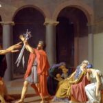 El análisis también incluye obras neoclásicas de Jacques-Louis David, como "El Juramento de los Horacios" y "La Muerte de Sócrates", que destacan por su retorno a la antigüedad clásica y su detallada representación de personajes y escenas históricas. David, como principal representante del neoclasicismo, utiliza una iluminación precisa y una composición cuidada para enfatizar la importancia de estos episodios históricos. Estas obras se encuentran en museos como el Louvre y los Museos Reales de Bellas Artes de Bélgica.