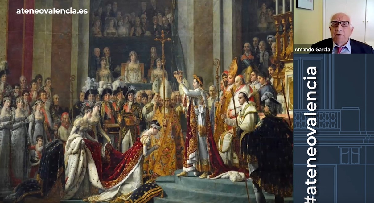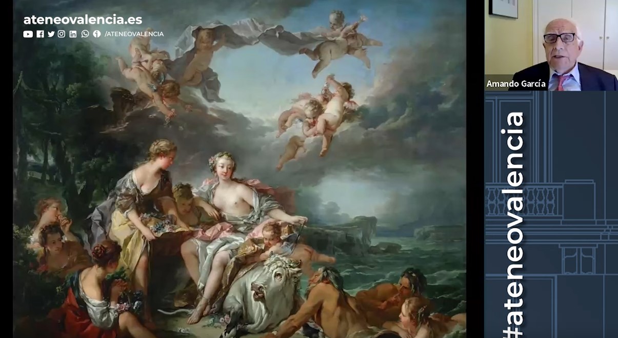 En esta conferencia del Ciclo Grandes Maestros de la Pintura Universal hablamos del siglo XVII. D. Amando García se enfrentó a la dificultad de seleccionar a los pintores más representativos debido a la abundancia de artistas de gran valía en ese periodo. El siglo XVII es fascinante, especialmente por el esplendor del Barroco, y sienta las bases para importantes cambios en los siglos XVIII y XIX. Durante este periodo, se consolidan las academias de Bellas Artes en ciudades europeas como París y Madrid, estableciendo normas y directrices para la representación artística, destacando el retrato, las escenas históricas y los interiores intimistas.