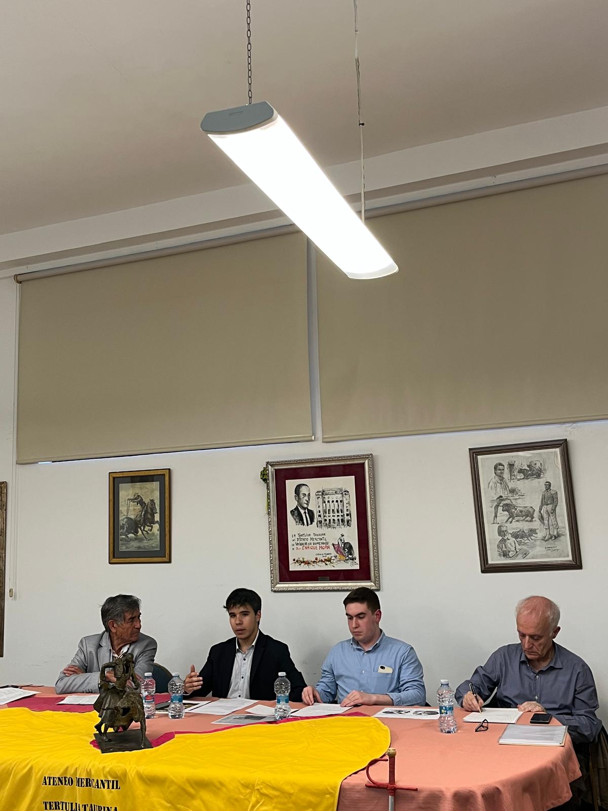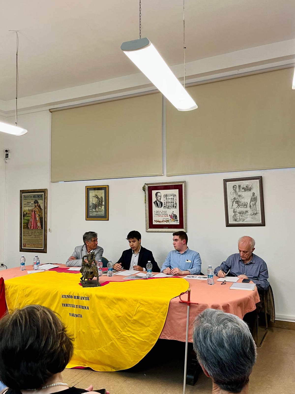 Nicasio Jiménez fue el encargado de abrir la sesión, saludando a los asistentes y excusando la ausencia de Paco Roger por motivos de salud. Informó, además, de varias novedades: la incorporación de las tertulias grabadas al canal de Youtube, la agilización de convocatorias para la próxima temporada, la posibilidad de ver retransmisiones taurinas en la Sala de la Tertulia, y los festejos previstos para el fin de semana en la Plaza de Toros de Valencia: novillada sin picadores el viernes 9, novillada picada el sábado 10 y festival benéfico el domingo 11.