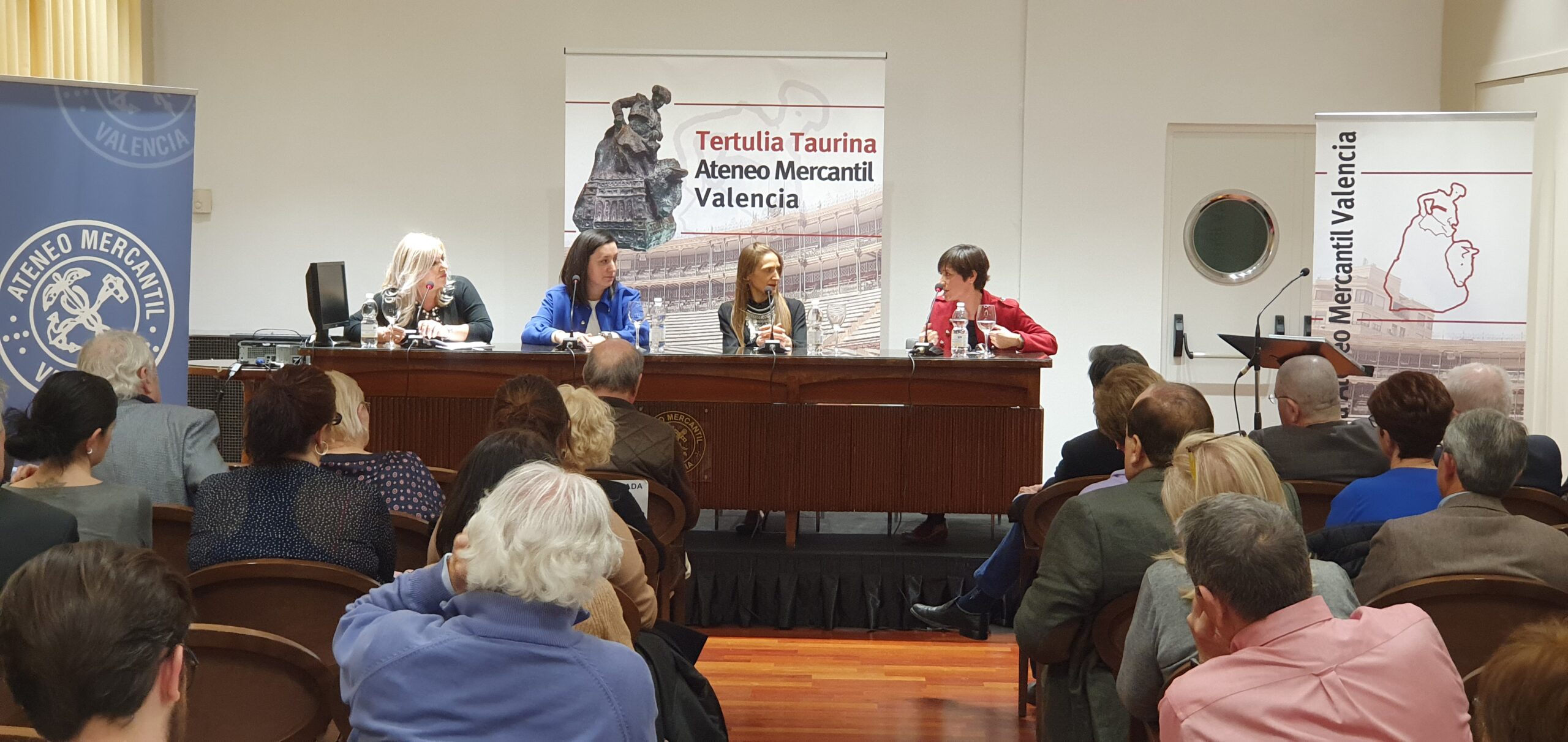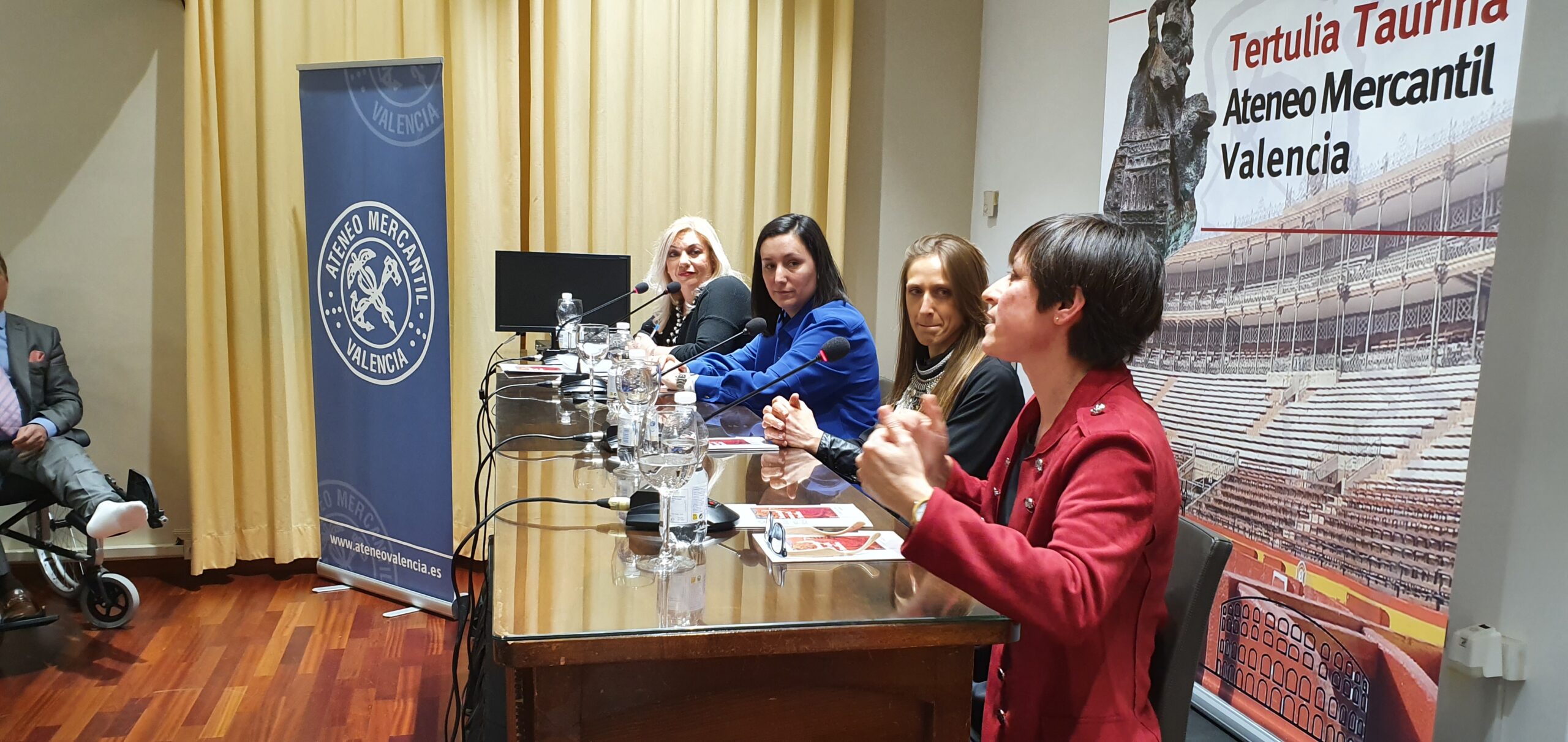 El día 5 de marzo del pasado año (2020) se celebró en el Salón Sorolla de nuestro Ateneo Mercantil, por tercer año consecutivo, el homenaje a la mujer taurina, un acto en el que contamos con la presencia de cinco mujeres: presidió el acto la presidenta del Ateneo, Dª. Carmen de Rosa, a la que acompañaron Dª. Marta Trenzano, Dª. Aida Badenes, Dª. María José Rodríguez y como moderadora Dª. Eva Rogel. Desde este día y por culpa de la pandemia de la Covid19, no ha habido ni tertulias ni actos taurinos presenciales, pero sí actos online como la entrevista al profesor de la Escuela Taurina de Valencia, Victor Manuel Blazquez, o las tertulias semanales en las que se abordan diversos temas de la actualidad y se la historia de la tauromaquia.