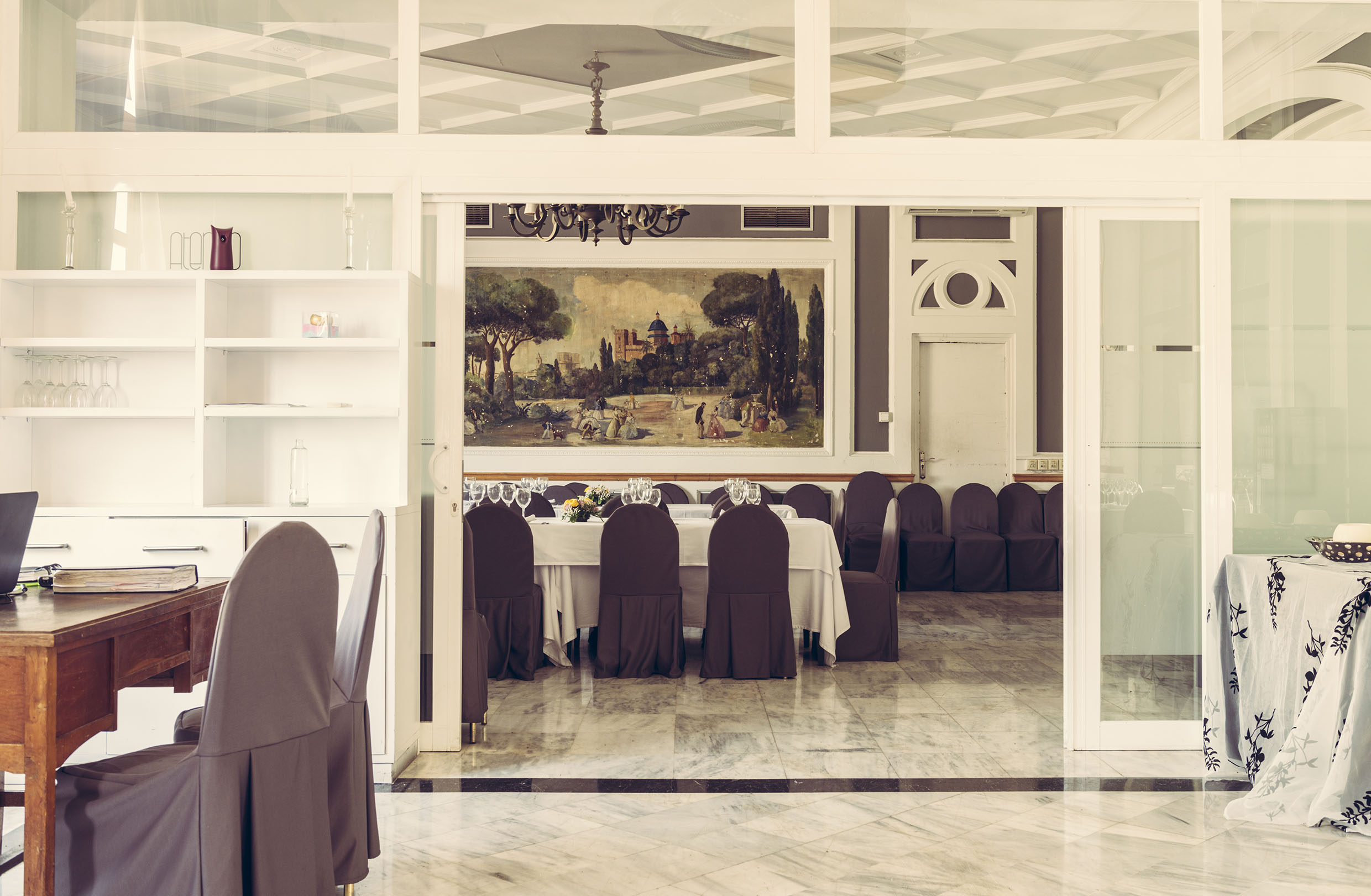 Desde el vestíbulo del sexto piso, recientemente reformado y que se utiliza para degustaciones, cócteles y hasta para desfiles de moda, se accede al Restaurante, que ofrece un menú diario a mediodía, a la terraza interior del Ateneo, separada del comedor por un amplio cristal, y a la Sala de Billares, sede del Club de Billar del Ateneo, que a pesar de las sucesivas reformas no ha perdido un ápice el aroma de los clásicos locales.