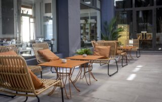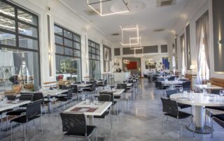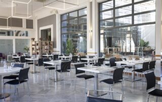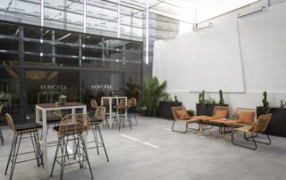 La renovación ha sido integral, tanto el interiorismo y mobiliario del restaurante como de su terraza jardín exterior. Se ha dotado al espacio de un aspecto contemporáneo sin perder la esencia de un lugar histórico ubicado en la plaza del Ayuntamiento.