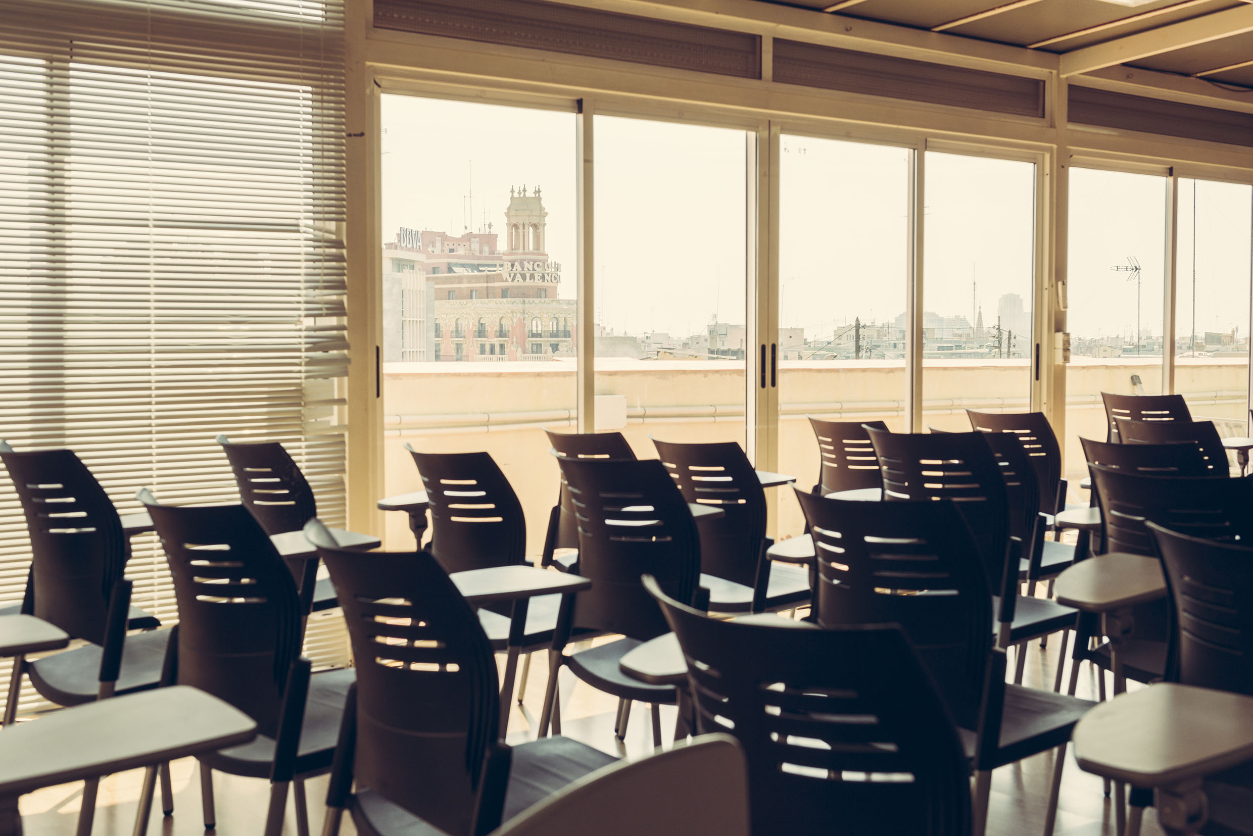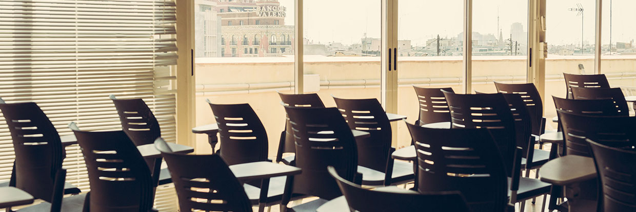 Desde esta sala se puede ver perfectamente el skyline de la ciudad de Valencia, ya que al estar situada en la planta más del Ateneo Mercantil se ve toda la ciudad a sus pies.