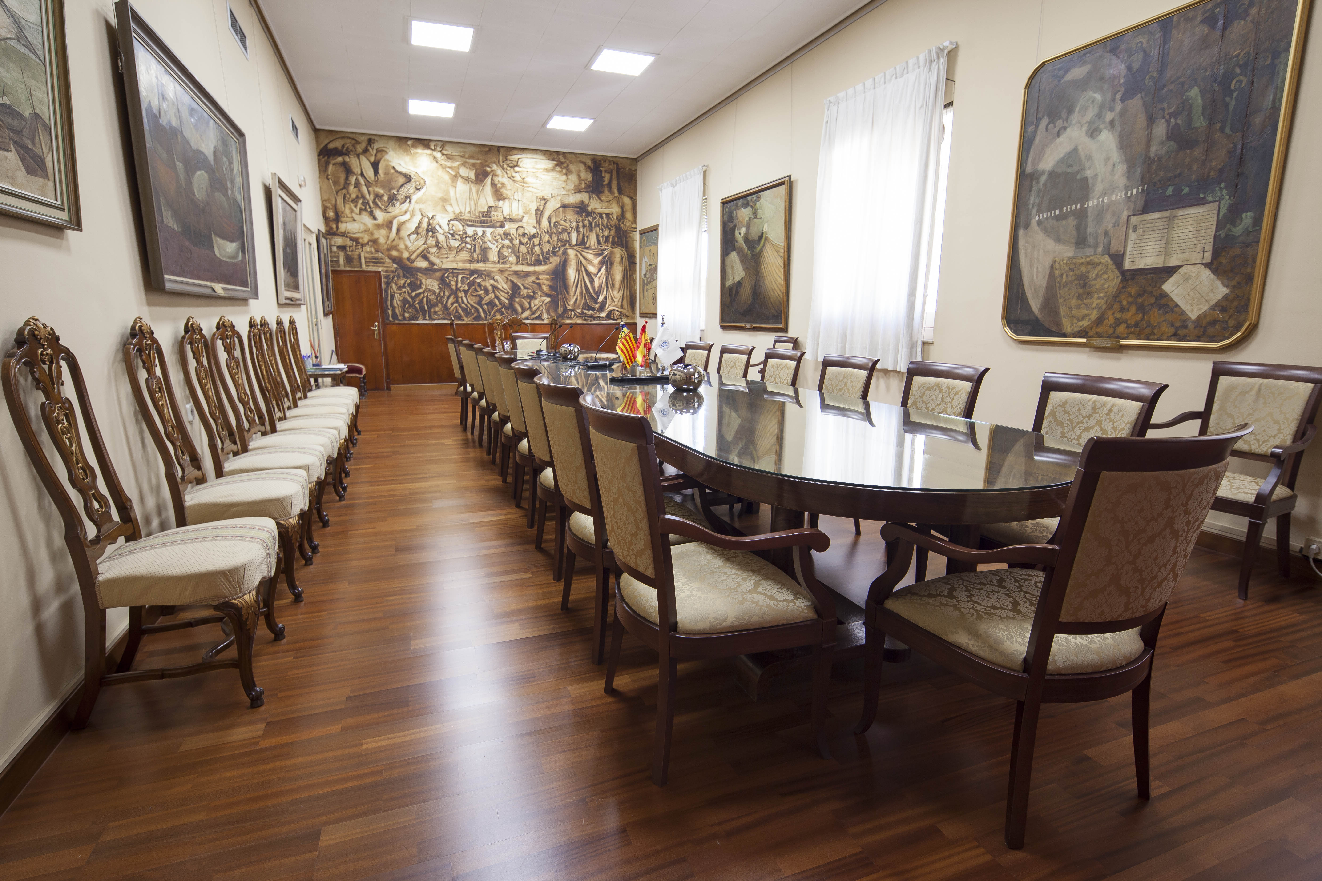 La Sala de Juntas es un espacio climatizado, de 56 mts., con capacidad para 45 personas. Tiene una mesa longitudinal que atraviesa tres cuartas partes del espacio y que se utiliza para los distintos usos a aplicar.