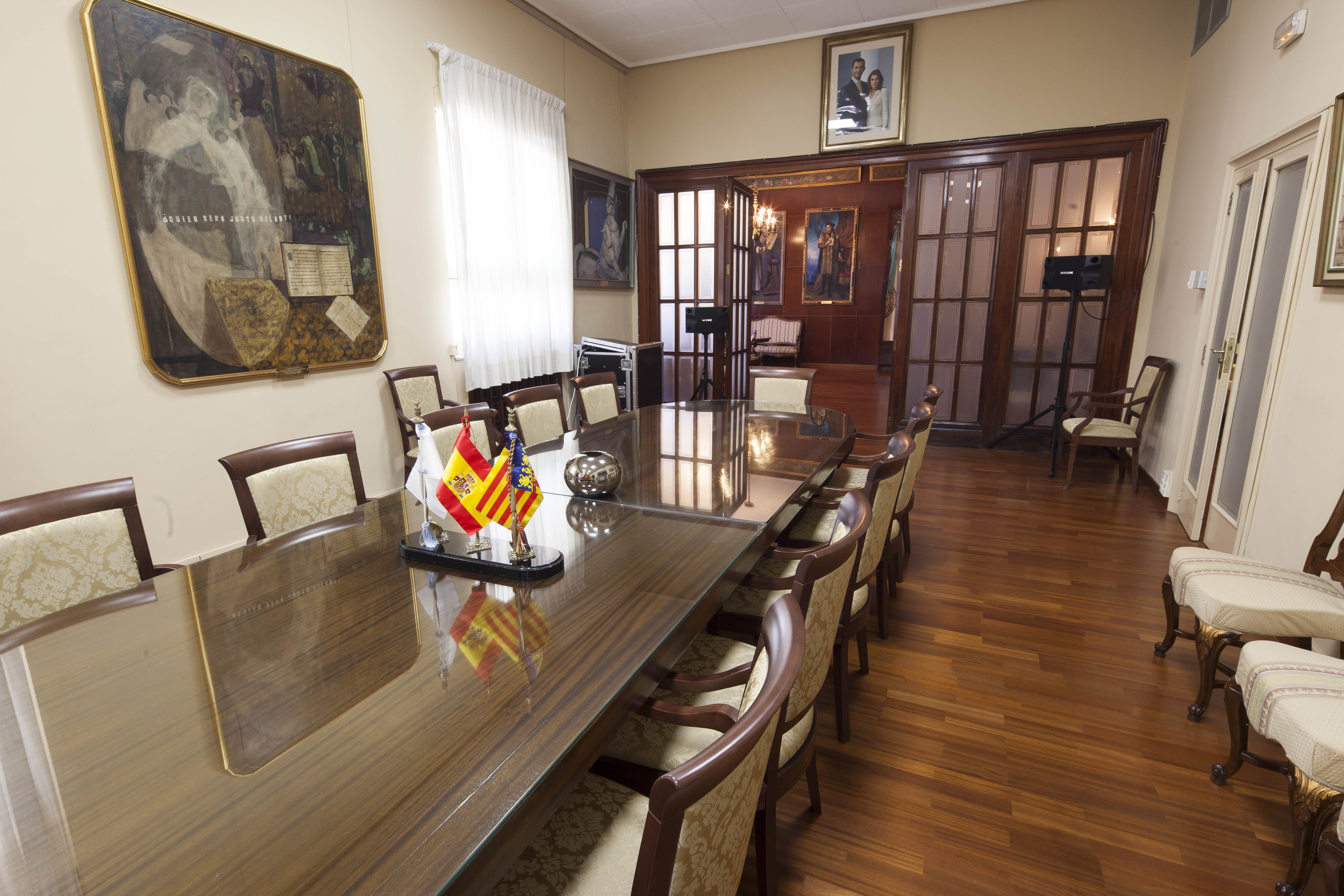 Salón señorial que emana historia en cada centímetro. Situado junto al despacho de la Presidencia y de la Secretaría General, y linda con la Sala de Banderas. En este espacio se celebran periódicamente las Juntas de la Directiva del Ateneo Mercantil de Valencia, también se desarrollan Comités.