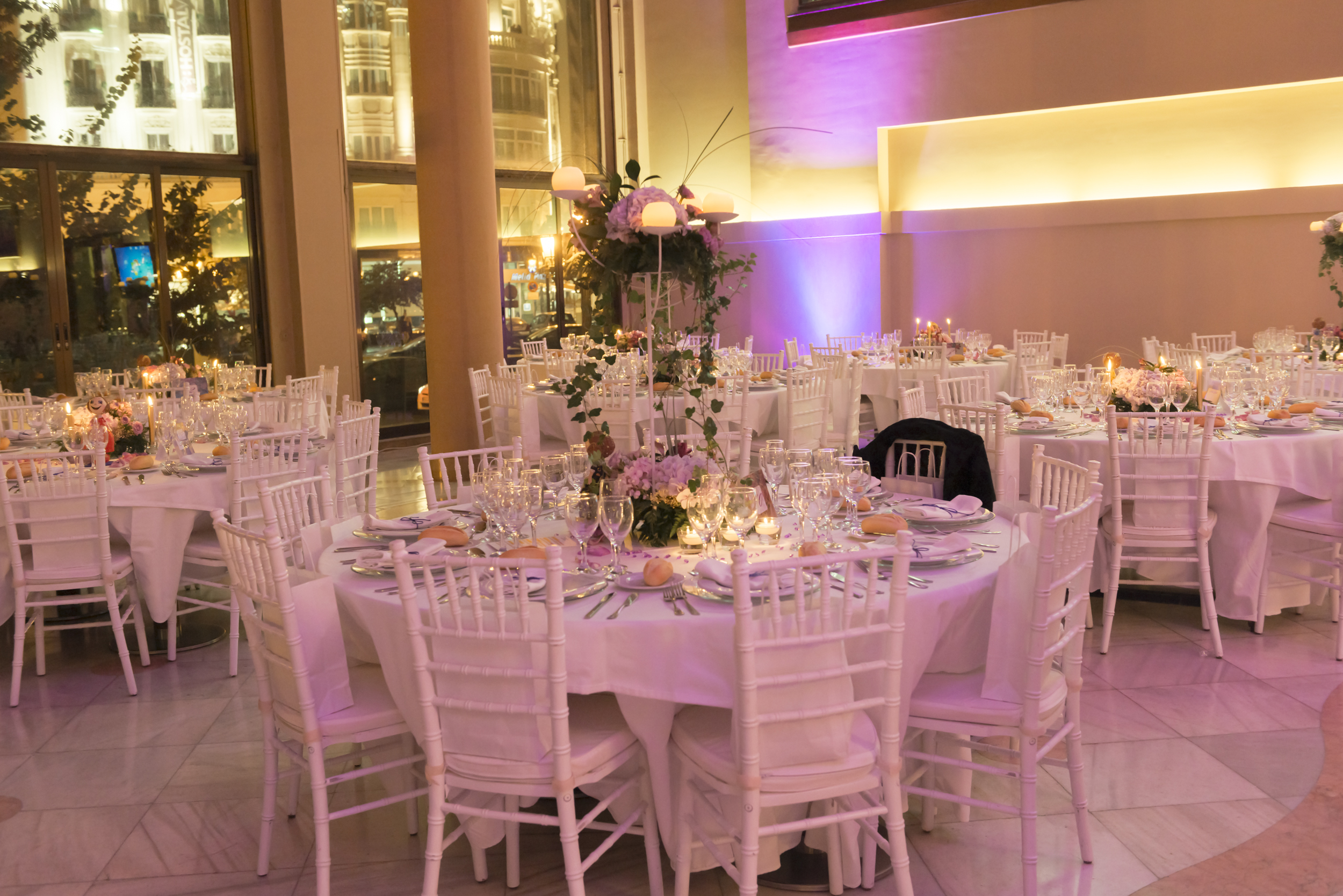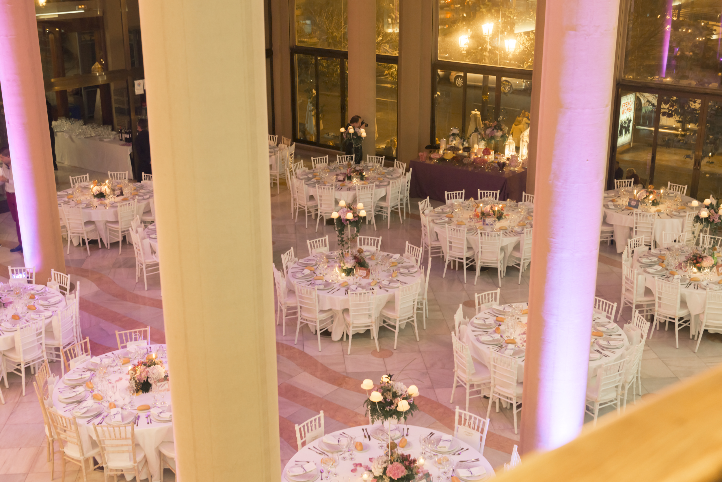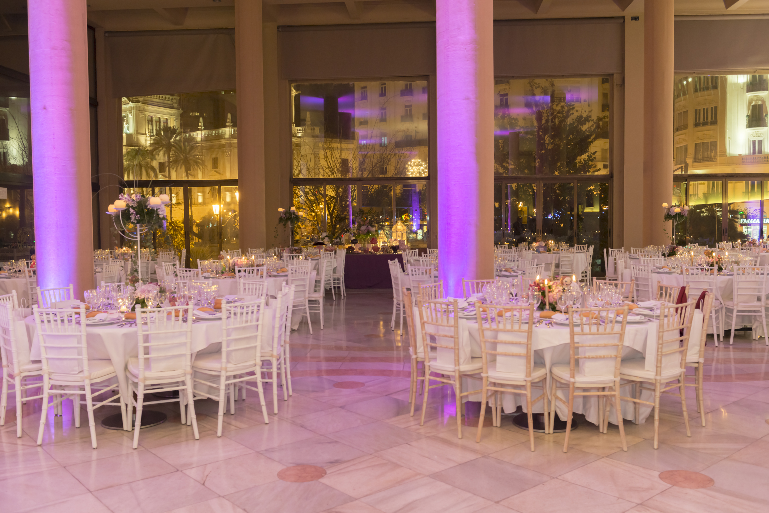 Aforo: 300-450 personas. Salón con una superficie de 586 mts. Tiene palcos con grandes columnas en un nivel superior al salón.