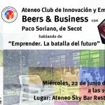 Beers&Business inició su andadura con una interesante charla e intercambio de impresiones sobre el impacto que tendrá la evolución tecnológica de los próximos años, sobre la figura del emprendedor. Además, tuvimos también el honor de contar con José Francisco Soriano Hernandez, que vino en representación de SECOT, a quien damos las gracias por su tiempo y su estupenda exposición.