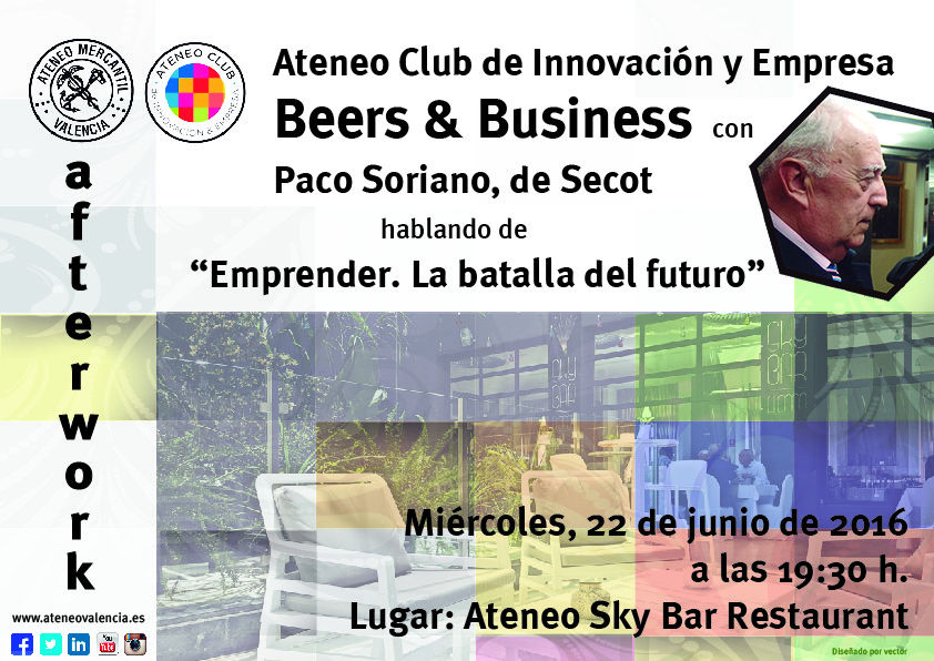 Beers&Business inició su andadura con una interesante charla e intercambio de impresiones sobre el impacto que tendrá la evolución tecnológica de los próximos años, sobre la figura del emprendedor. Además, tuvimos también el honor de contar con José Francisco Soriano Hernandez, que vino en representación de SECOT, a quien damos las gracias por su tiempo y su estupenda exposición.