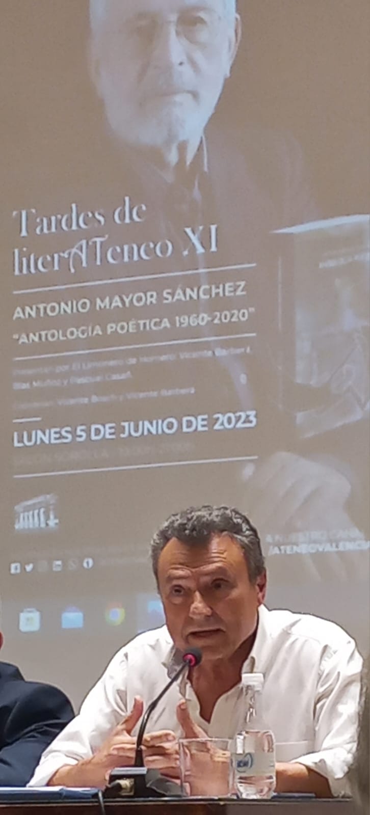 Quiero destacar la eficiencia de las personas que trabajan en la parte técnica de estos actos, surgieron un par de problemillas, pero enseguida se solucionaron, especialmente citar a mi querido Vicente Bosch que anduvo toda la tarde de aquí para allá solucionándolo todo, Vicente cuida la cultura, ama la cultura, por eso está al frente de ella, por eso organiza tanta y tan buena en el Ateneo de Valencia.