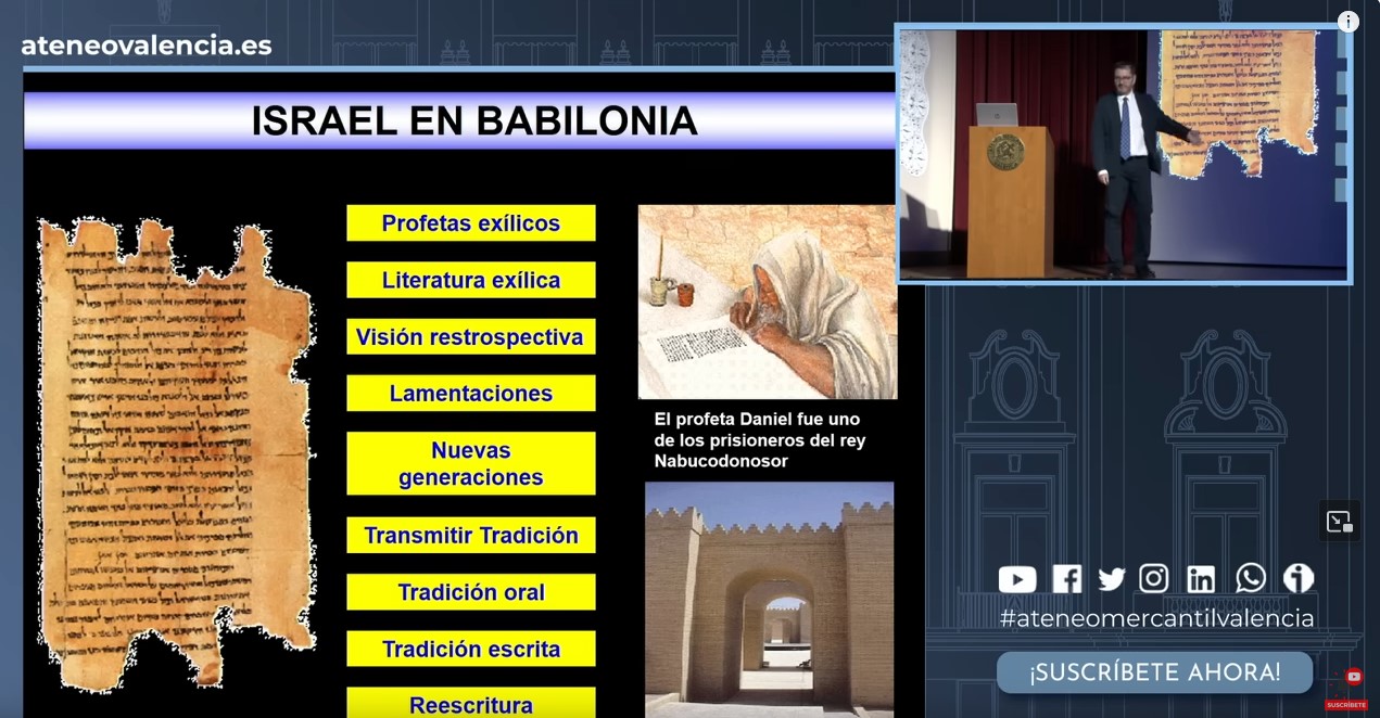 Finalmente, abordó el impacto del exilio en la literatura bíblica, destacando cómo se elaboraron relatos y profecías para explicar la situación del pueblo y su relación con Dios. La literatura que surgió durante y después del exilio contribuyó a consolidar la identidad judía y establecer la Biblia como un texto sagrado. Y enfatizó que la Biblia, aunque escrita en diferentes épocas y contextos, refleja un proceso continuo de reinterpretación y reafirmación de la identidad cultural y religiosa del pueblo judío.