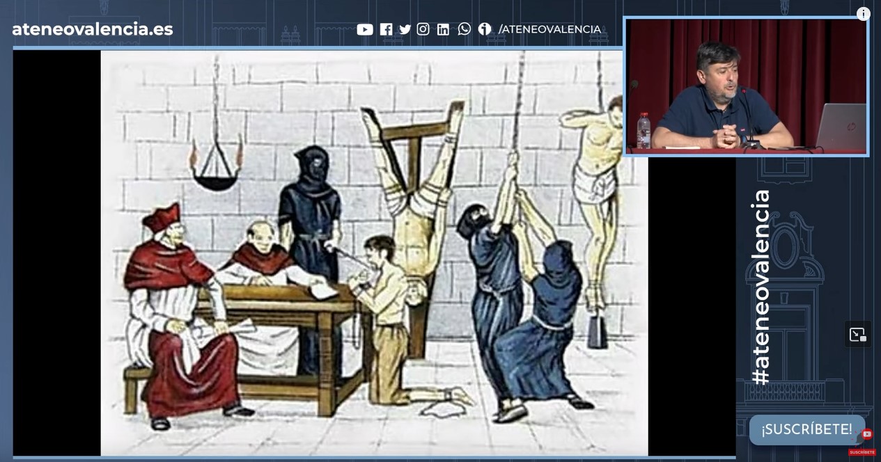 Asimismo, se abordó el funcionamiento y las figuras del Tribunal de la Inquisición en Valencia, destacando el papel de los jurados y los notarios, quienes decidían sobre las herejías y mantenían un índice de libros prohibidos. Los notarios se dividían en diferentes tipos, como los de secuestro, que registraban propiedades embargadas, y los de secreto, que anotaban las confesiones de los acusados. Además, se mencionan los familiares, que eran laicos que, aunque no pertenecían al Santo Oficio, tenían el privilegio de acusar a otros de herejía. Esta figura se convirtió en un problema debido al gran número de familiares, por lo que en 1568 se limitó su cantidad.