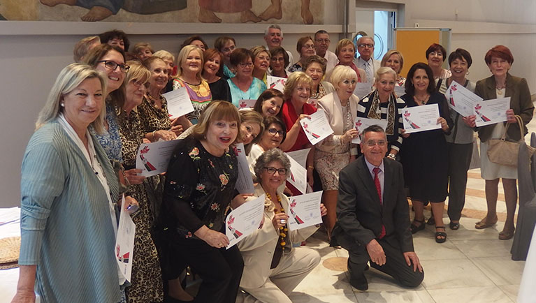 Ese mismo día se hizo una visita al Real Colegio Seminario de Valencia y tras la entrega de diplomas por parte de la presidenta Carmen de Rosa, el directivo Vicente Bosch y el encargado del Aula Cultural, Ricard Bellveser, se pudo seguir la conferencia que el profesor del Aula, D. Salvador Raga, impartió en el Salón de Actos sobre las "Curiosidades del Corpus de Valencia".