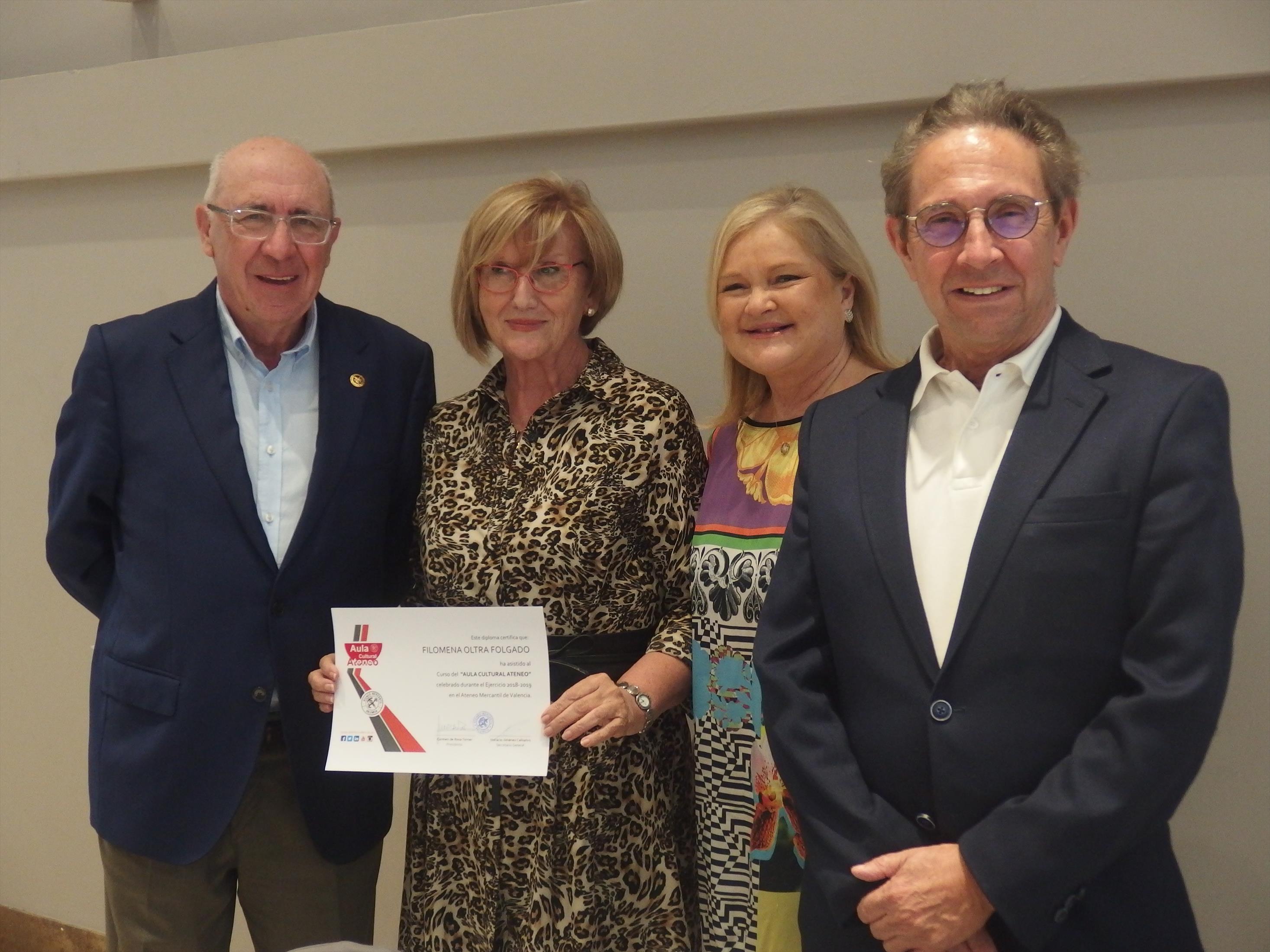 La comida de las Actividades Culturales y del Aula de Cultura del Ateneo Mercantil congregaron este jueves a 160 personas entre alumnado, profesores, ponentes, viajeros y socios ateneístas que están en las diversas áreas de nuestra entidad. Se pone el colofón a un curso intenso de actividades culturales, en el que se ha incrementado aún más si cabe una oferta que ya era completísima. Con la comida celebrada en el Salón Noble se puso el broche perfecto a un curso en el que el Aula Cultural ha batido todos los récords, ya que cerca de un centenar de alumnos han disfrutado semanalmente de las clases a mayores de 55 años.