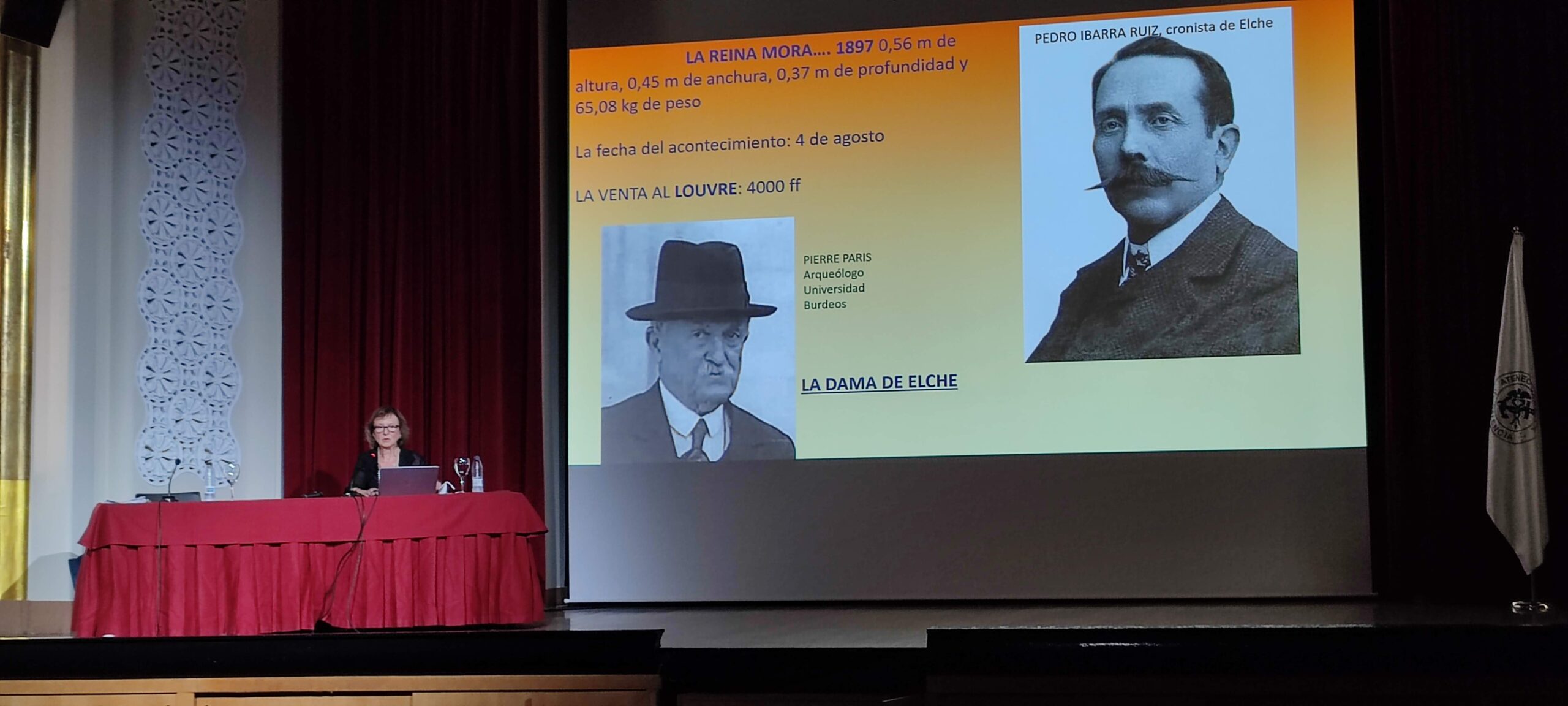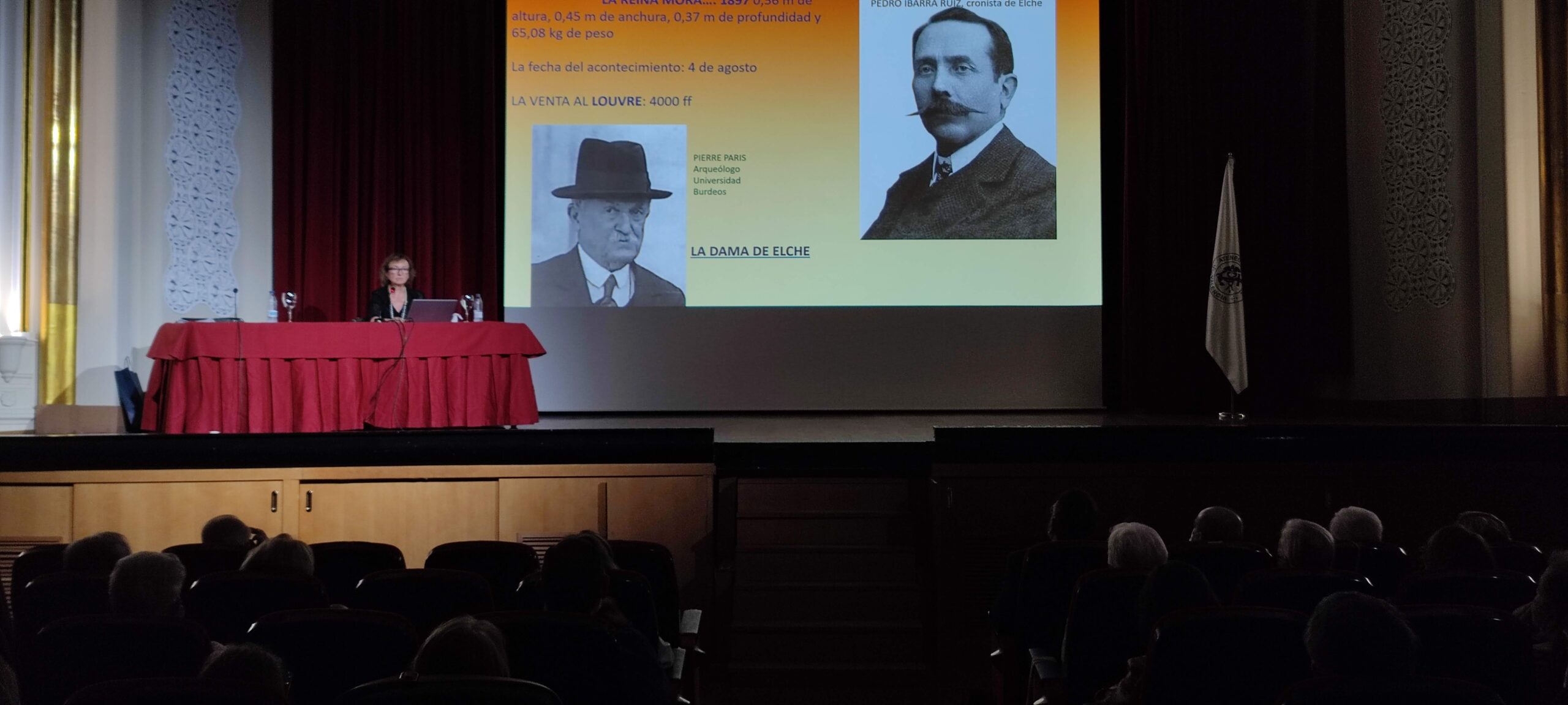 A la investigación arqueológica de la Dama de Elche se suman las circunstancias de su descubrimiento en 1897 y el fetichismo suscitado por una obra definida como la esencia de España, tanto por hispanistas románticos de diversos países como por intelectuales y artistas españoles. Se trata, sin embargo, de una escultura ibérica del siglo IV a. C., muy anterior a la existencia de la nación española, que, tras ser vendida a Francia, se exhibió durante 44 años en el Museo del Louvre. En 1941 fue restituida al Museo del Prado, sumándose a los bienes del patrimonio español incautados durante la guerra napoleónica, y desde 1972 se expone en el Museo Arqueológico Nacional.