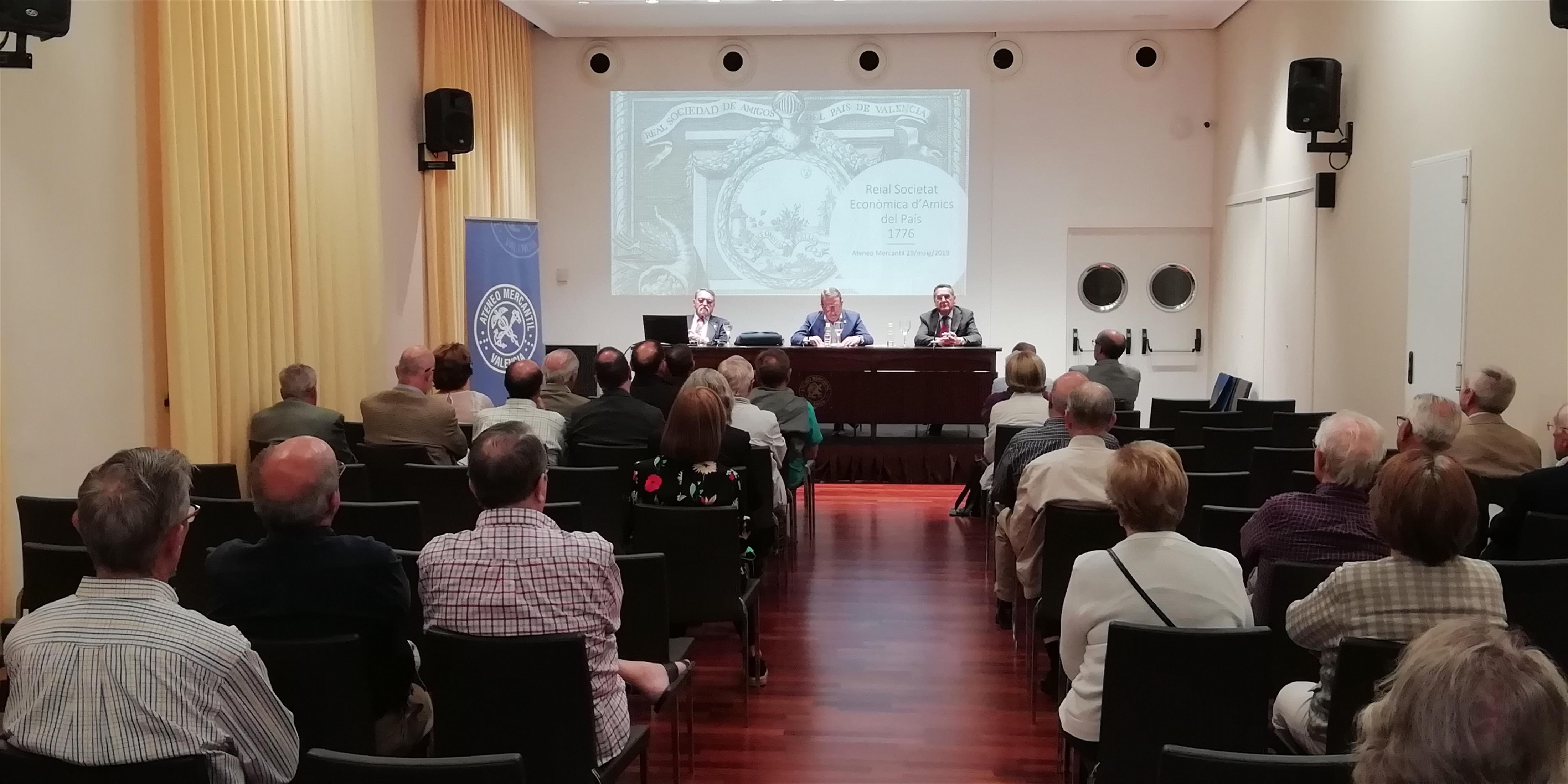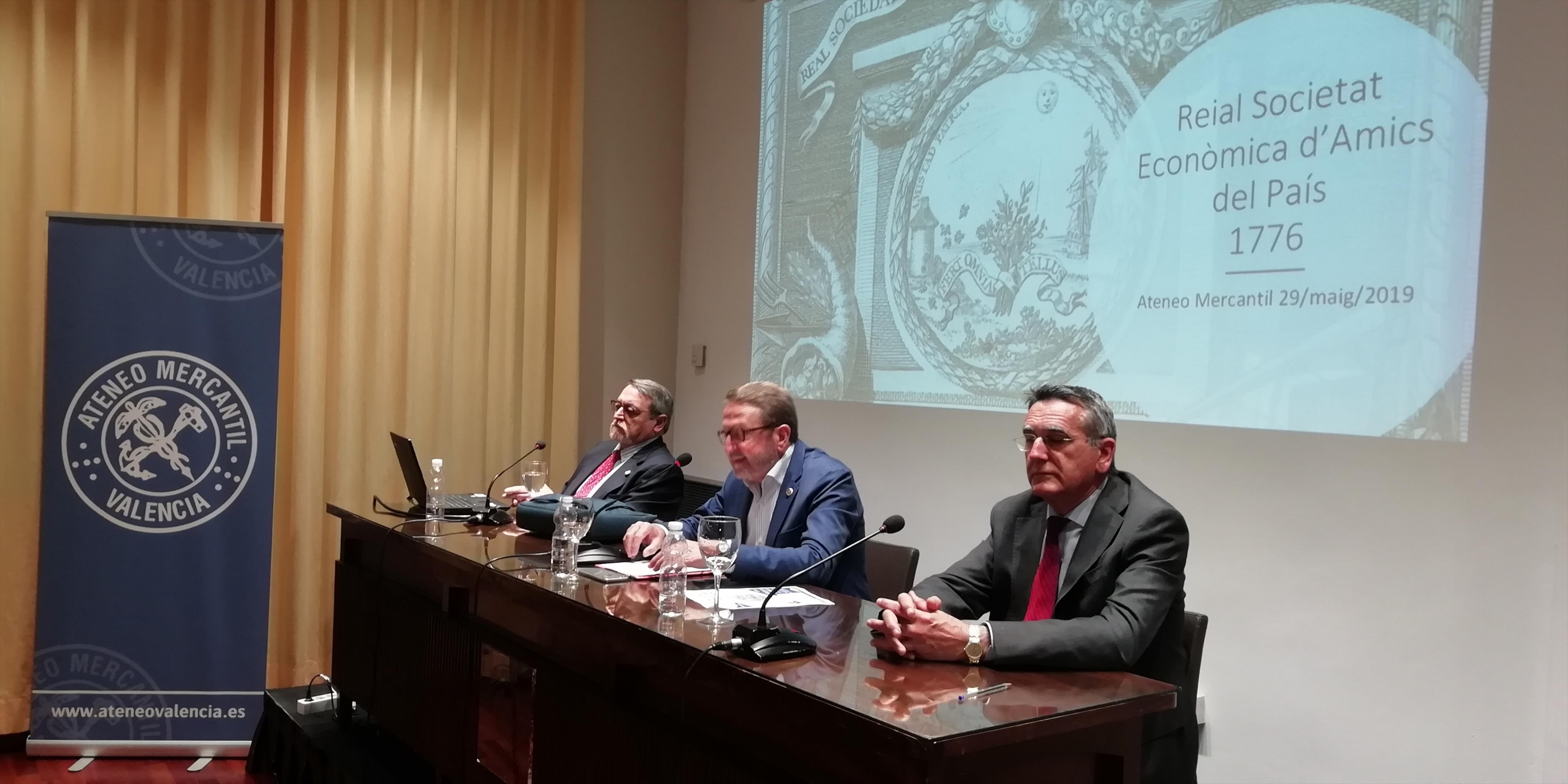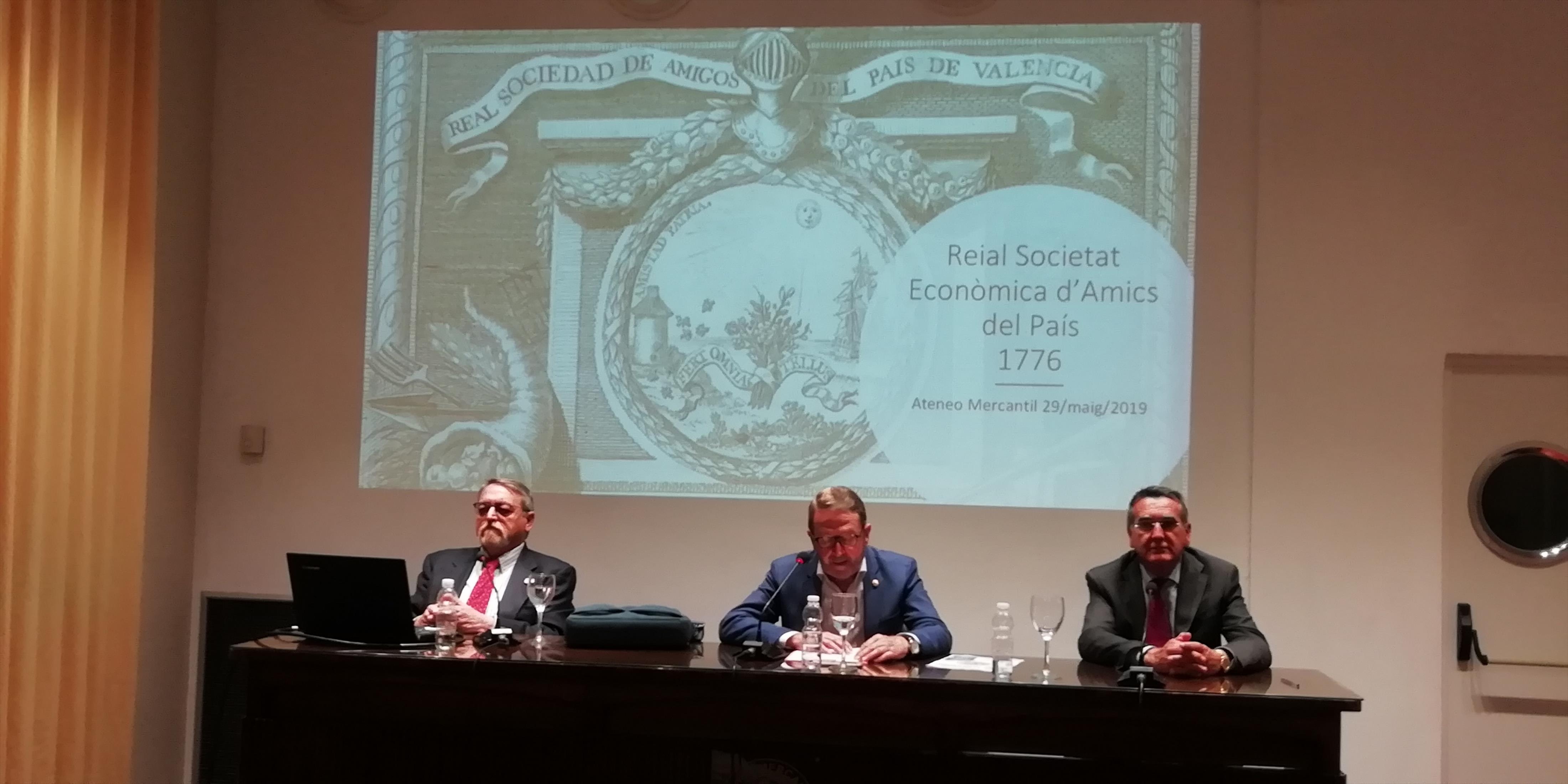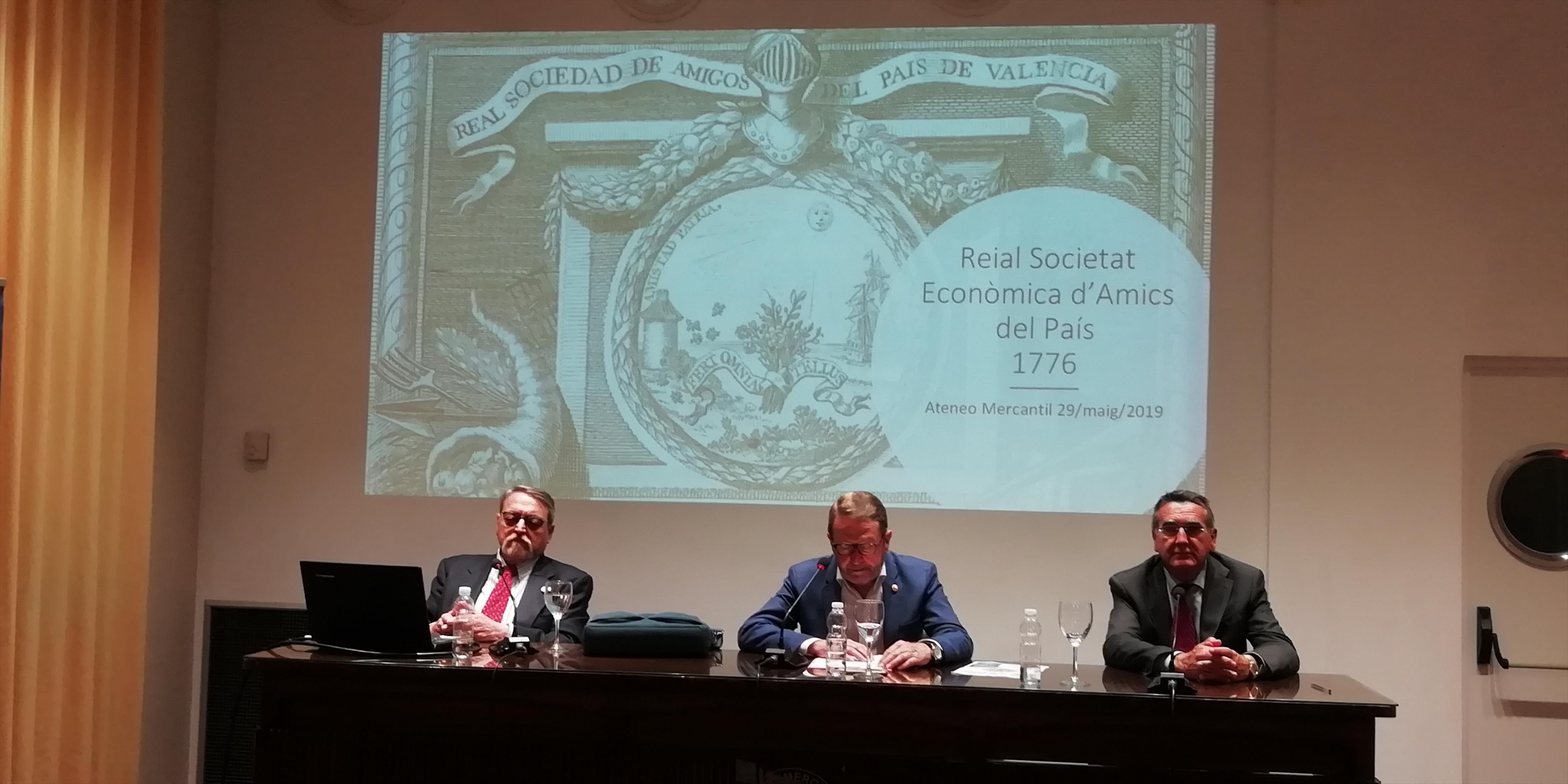 El director de la Real Sociedad Económica de Amigos del País de Valencia, D. Vicente Botella, fue el encargado de explicar la larga historia de esta entidad valenciana cuyos orígenes hay que buscarlos en la iniciativa altruista de siete patricios valencianos, Pedro Mayoral, Francisco Pérez Mesía, Sebastián de Saavedra, Francisco de Lago, Juan de Vao, Marqués de León y Marqués de Mascarell. La entidad nace como fruto de una intensa política estatal de creación de Sociedades Económicas en toda la Península para llevar a la práctica los ideales de la Ilustración, de la Razón y la Modernidad.