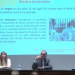 Los preceptos y valores éticos está recogidos en las normativas, en la Constitución, por ejemplo; o en el estatuto del empleado público. En el ámbito público, la ética se refiere a la integración de los valores en los gestores públicos. Y tiene su desarrollo en los años 70 del siglo pasado. Estos gestores públicos han de cumplir una serie de valores, que no siempre están escritos: hay que potenciar y apelar a esos valores éticos. Las actitudes de estos gestores han de estar dirigidas al benefici0o común. La ética de la función pública es aplicada. A todos nos suena el escándalo de Watergate, como uno de los más importantes y que supuso un punto de inflexión.