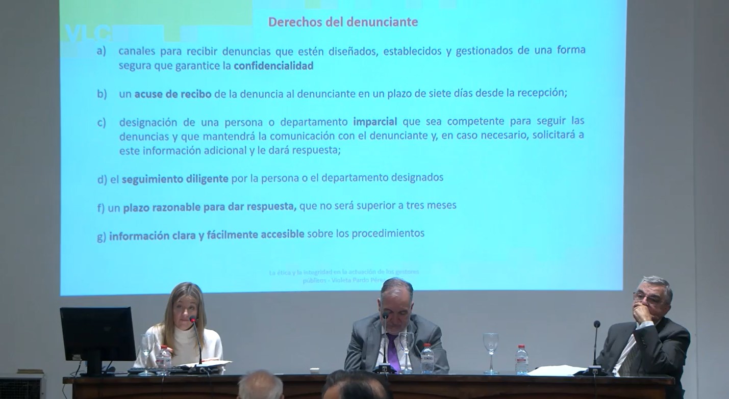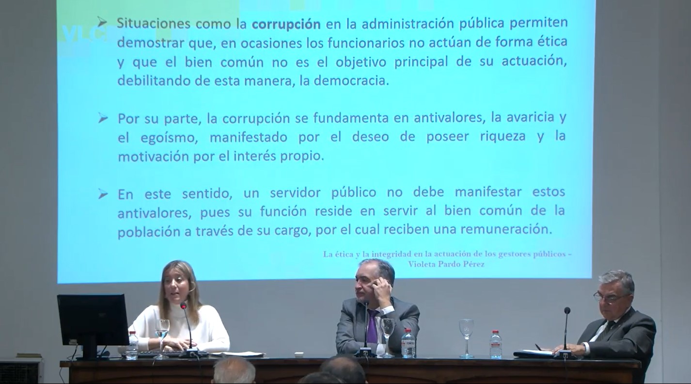 Los códigos de conducta y los medios de formación, educación y sensibilización. Y finalmente, la gestión: que haya una coordinación de control de cómo se realizan las cosas a través de comités éticos, etc. Y condiciones sólidas de servicio público. Cuando hay conflicto de intereses, debemos apartarnos del procedimiento, por ejemplo. También se ha impuesto el concepto de fraude, que sería el uso de documentación falsa, inexacta, etc. Incumplimiento de comunicar una información; etc. Y también en el marco normativo, hay que trabajar los principios de buena administración. Todos los ciudadanos tienen derecho a una buena administración. Se trata de establecer principios para que se hagan las cosas bien. También, además del marco normativo, las administraciones públicas está promulgando códigos éticos y de mejora de los comportamientos éticos de los servidores públicos.