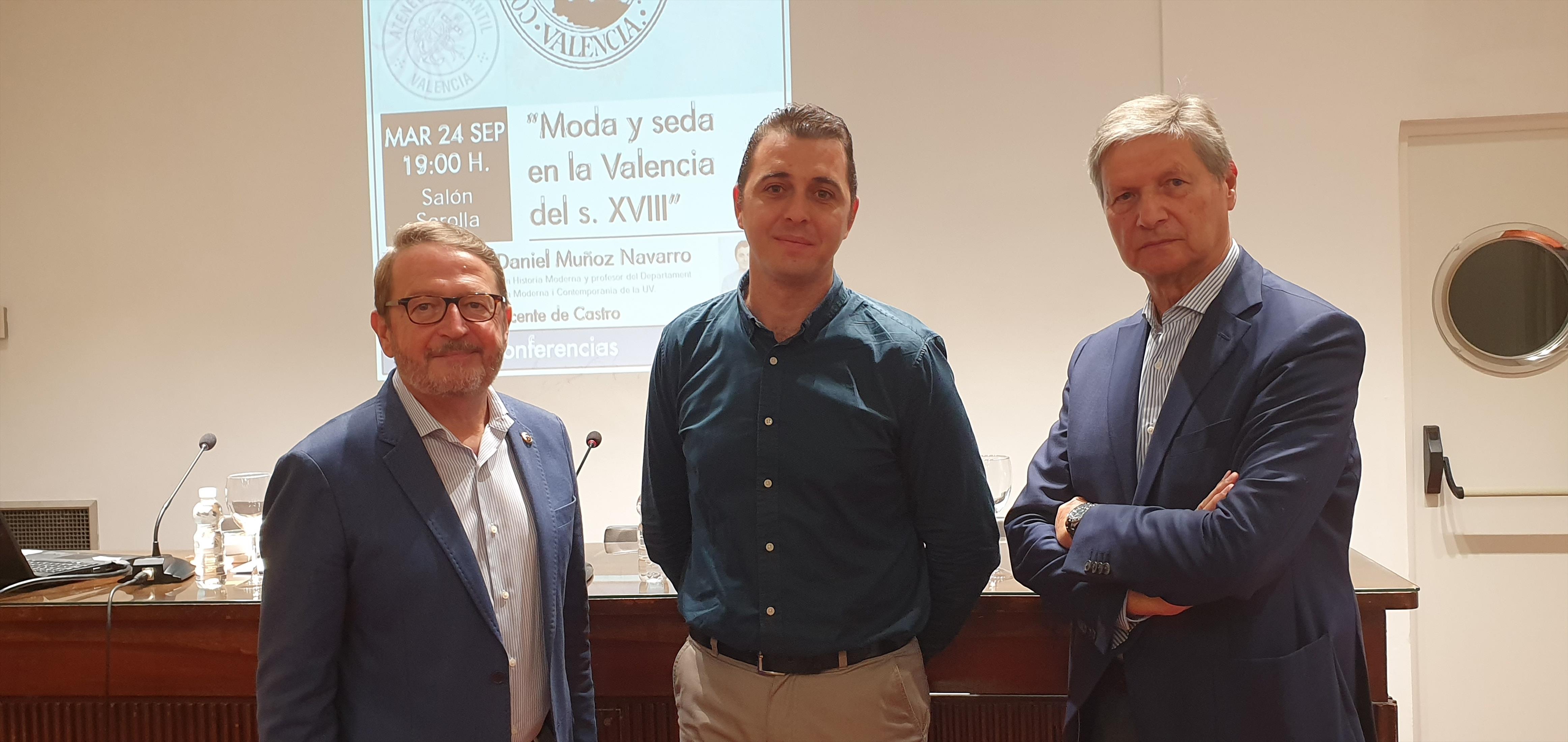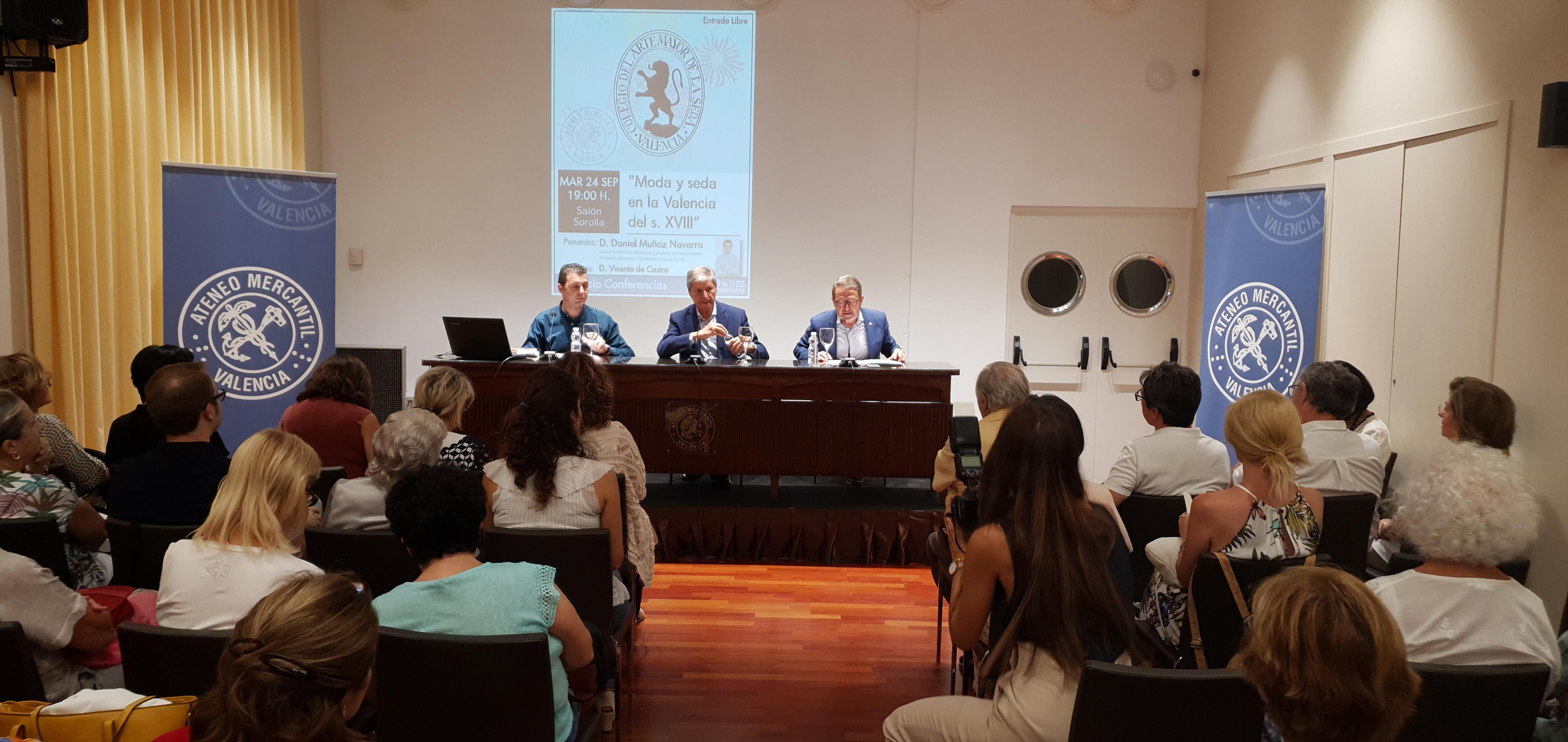 A través de esta conferencia se trató de desentrañar esta compleja conexión entre moda y seda, marcada por la incapacidad de adaptación de esta industria valenciana a los nuevos designios de la moda francesa, que marca la pauta en la Europa ilustrada. Para ello, plantearemos un análisis de los factores productivos y los sistemas comerciales en la Valencia del Setecientos, en la que el constante deseo de imitación de las sedas extranjeras, chocaba con la rigidez legislativa y ordenancista; así como con otros factores limitantes (tanto endógenos como exógenos). Todo ello, nos permite comprender mejor y de manera más compleja la evolución de la industria sedera valenciana a finales del Antiguo Régimen.