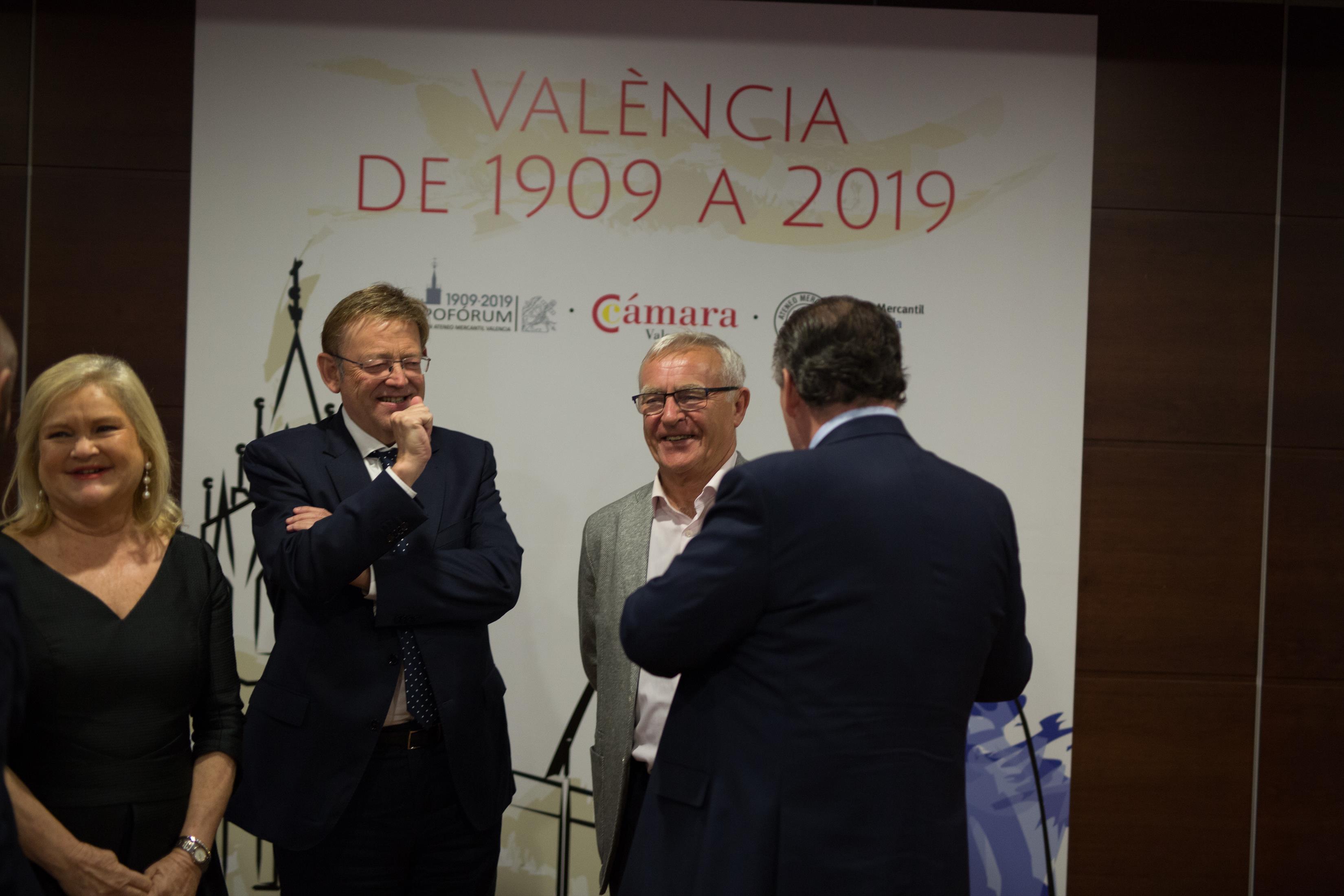 Por su parte, el presidente de la Cámara de València, José Vicente Morata, ha recordado la participación de la entidad que preside en la Exposición de 1909: "La Exposición fue, además, el momento en el que el entonces Presidente de la Cámara de Comercio de Valencia, Ramón de Castro, convocó una Asamblea de Cámaras de toda España en Valencia para tratar sobre la reforma del Código de Comercio", y ha explicado que entre las peticiones se encontraba la creación de un ferrocarril por el litoral mediterráneo.
