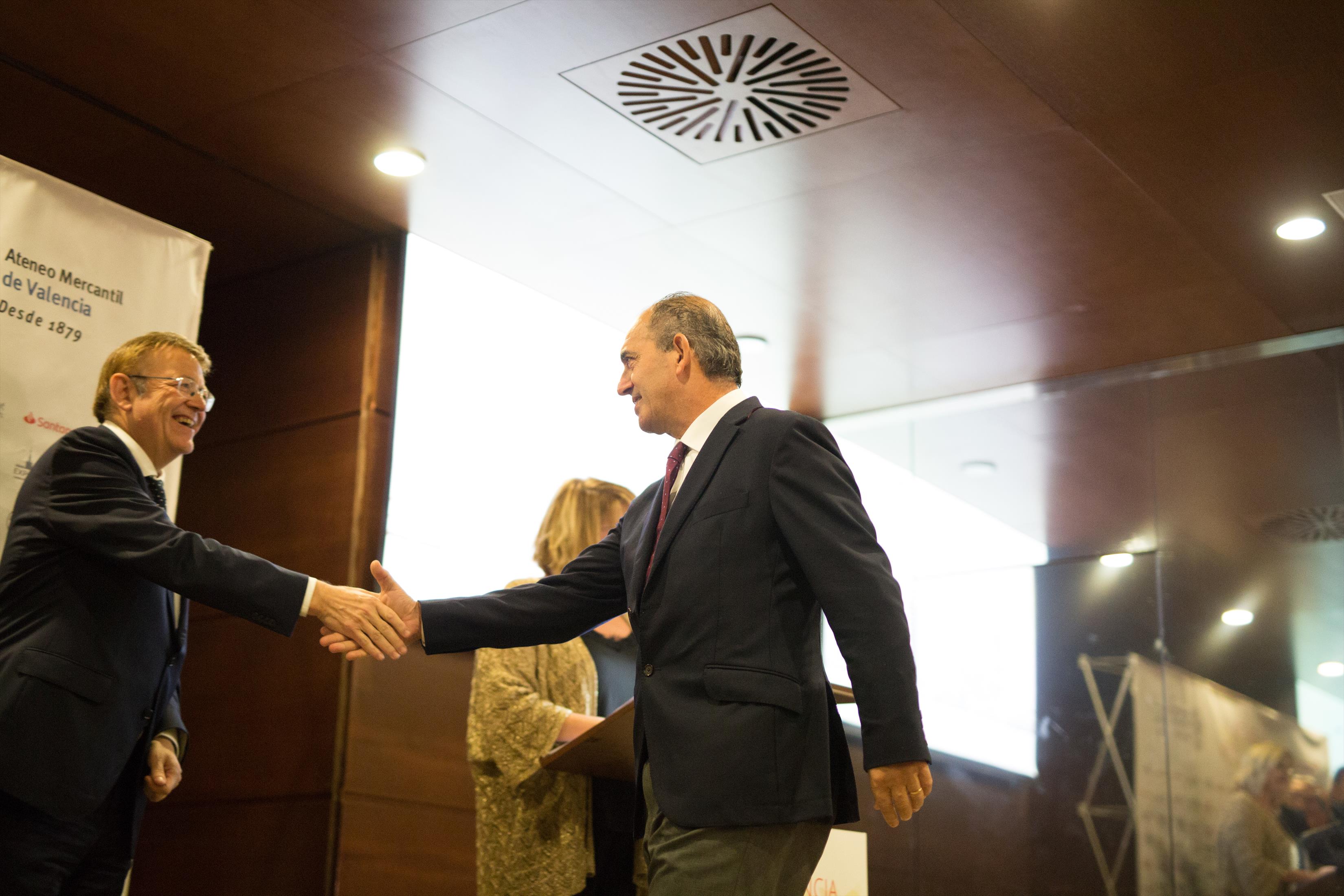En el acto ha intervenido la presidenta de la Fundación del Ateneo, Carmen de Rosa, el presidente de Cámara Valencia, José Vicente Morata, el President de la Generalitat Ximo Puig y el alcalde de Valencia Joan Ribó. Además han asistido, entre otras autoridades, el presidente de la Diputación, Antoni Gaspar, y representantes de asociaciones y entidades públicas y privadas que han participado, junto con otros, en la dinamización de la ciudad con su contribución en el ámbito de la cultura, el urbanismo, la actividad económica o el comercio de la ciudad.