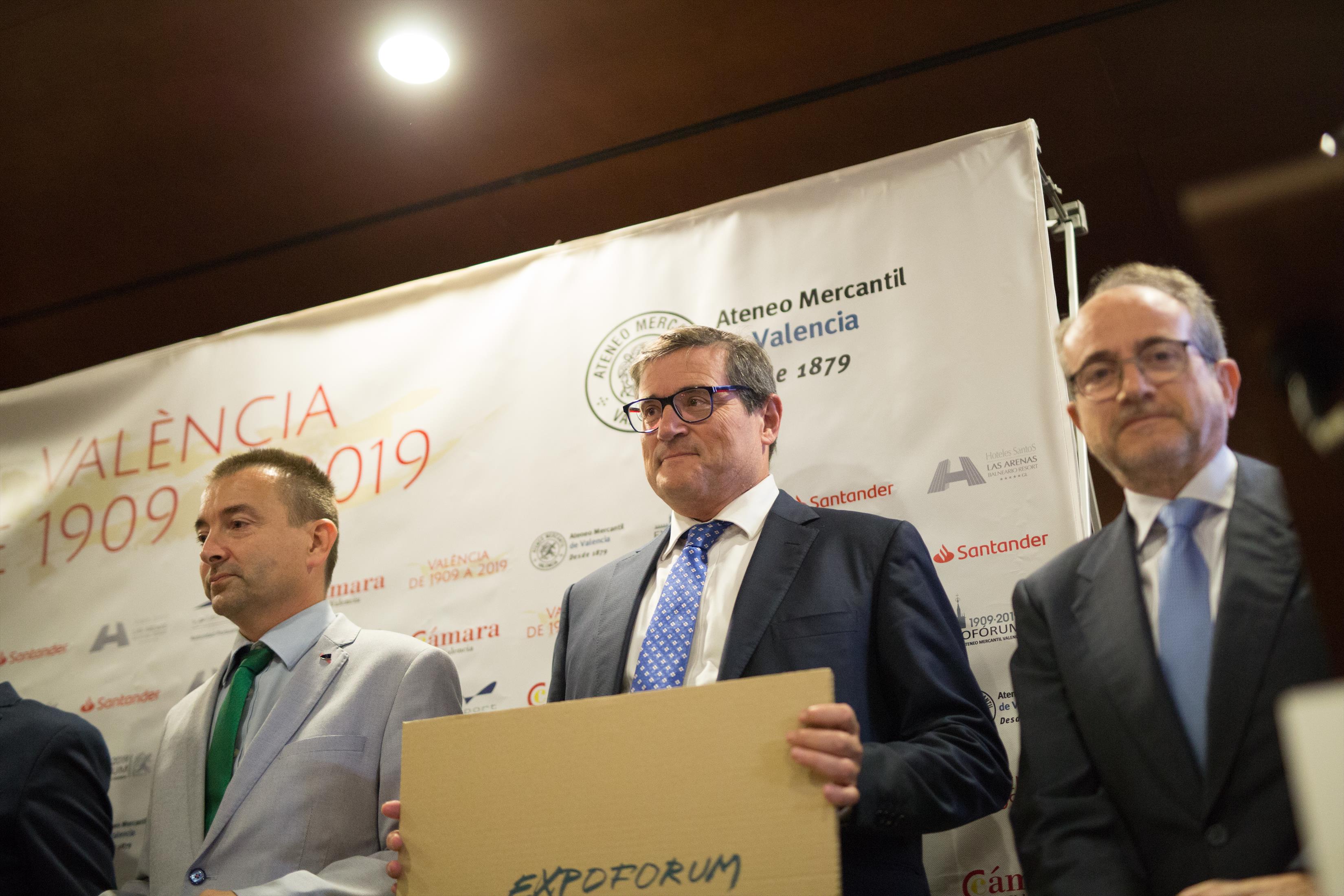 La Fundación del Ateneo Mercantil, con la colabración de Cámara Valencia, han celebrado en el Hotel Las Arenas el acto de clausura de Expofórum 2019, en el que se han reconocido las iniciativas y proyectos que han contribuido a la dinamización del turismo y el comercio de la ciudad de Valencia. El evento se enmarca dentro de Expofórum 2019, una conmemoración de los 110 años de la Exposición Regional de 1909 impulsada por la Fundación del Ateneo que tiene como objetivo recuperar el espíritu pionero e innovador de la ciudad.