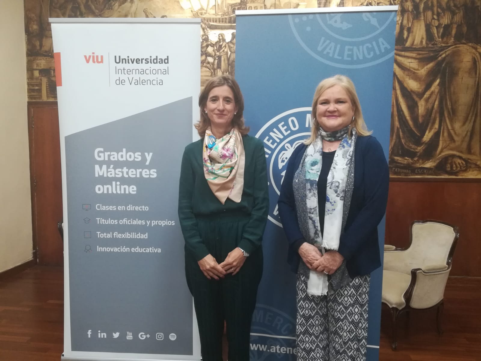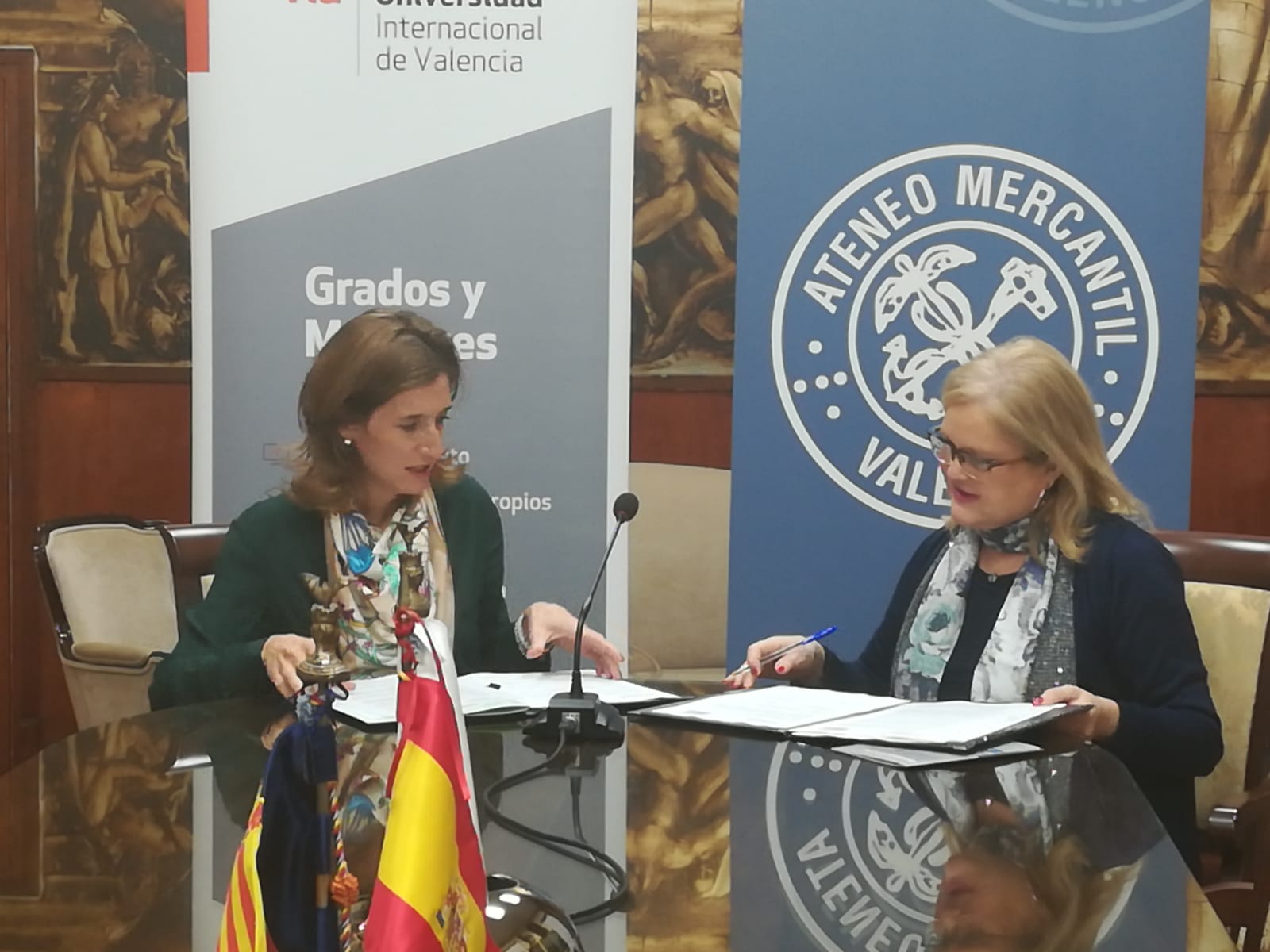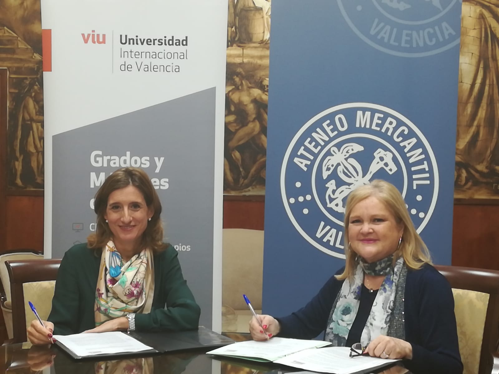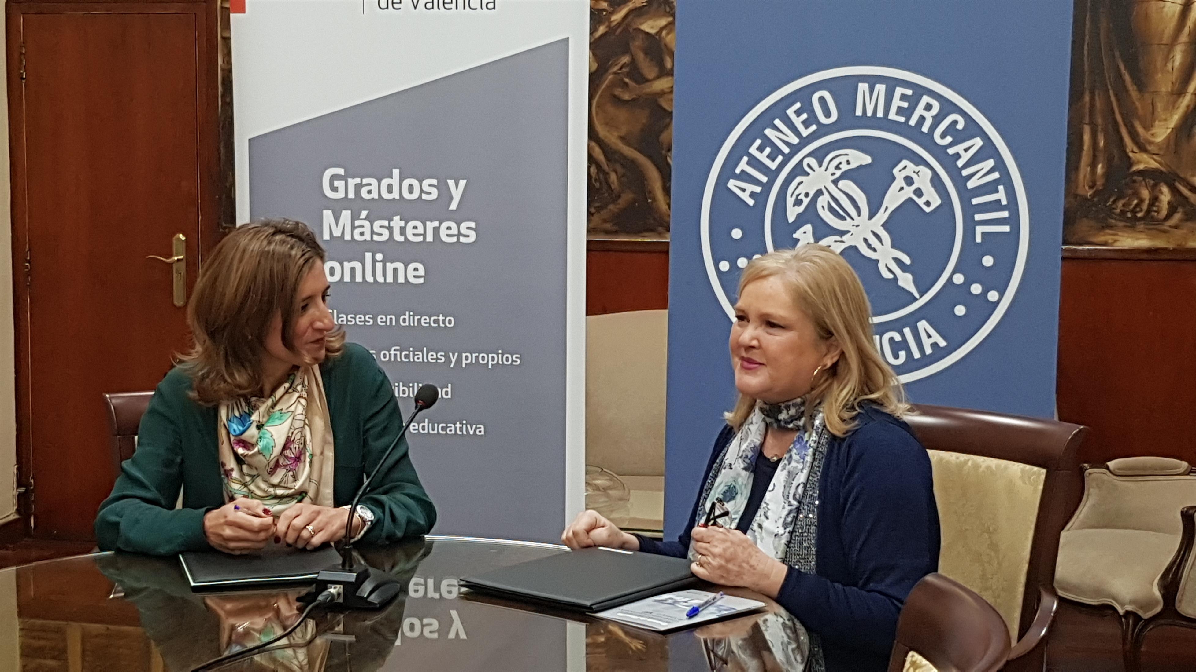La Fundación Ateneo Mercantil que preside Dña Carmen de Rosa y la Universidad Internacional de Valencia (VIU) han firmado un acuerdo marco de colaboración para la organización conjunta de actividades docentes, educativas y de investigación dirigidas tanto, a reforzar la formación de los/las estudiantes de VIU como a ampliar el programa cultural y formativo de los socios del Ateneo.