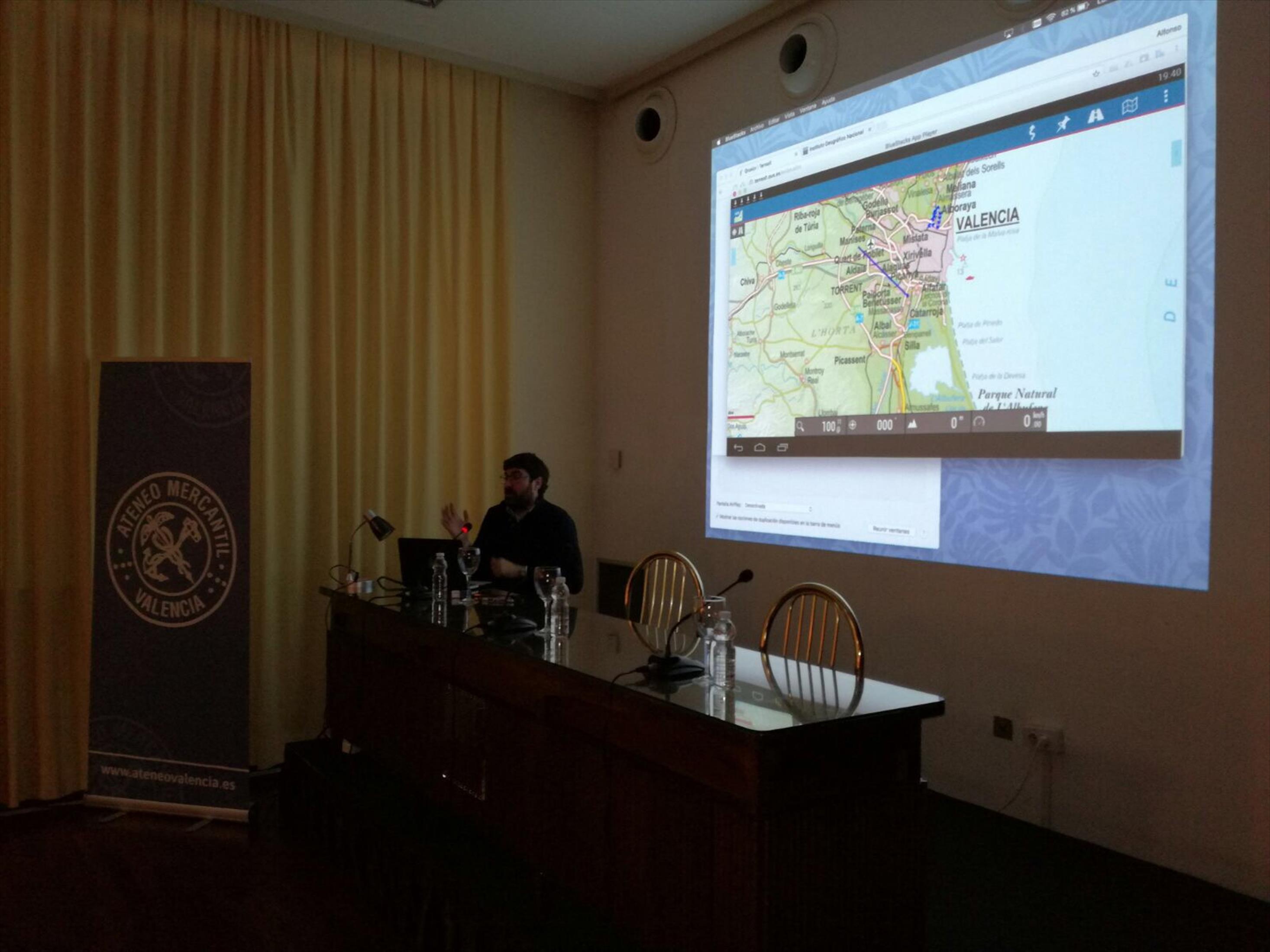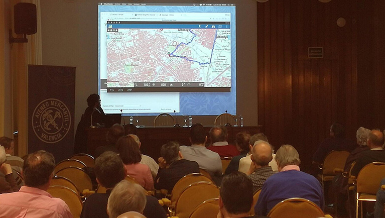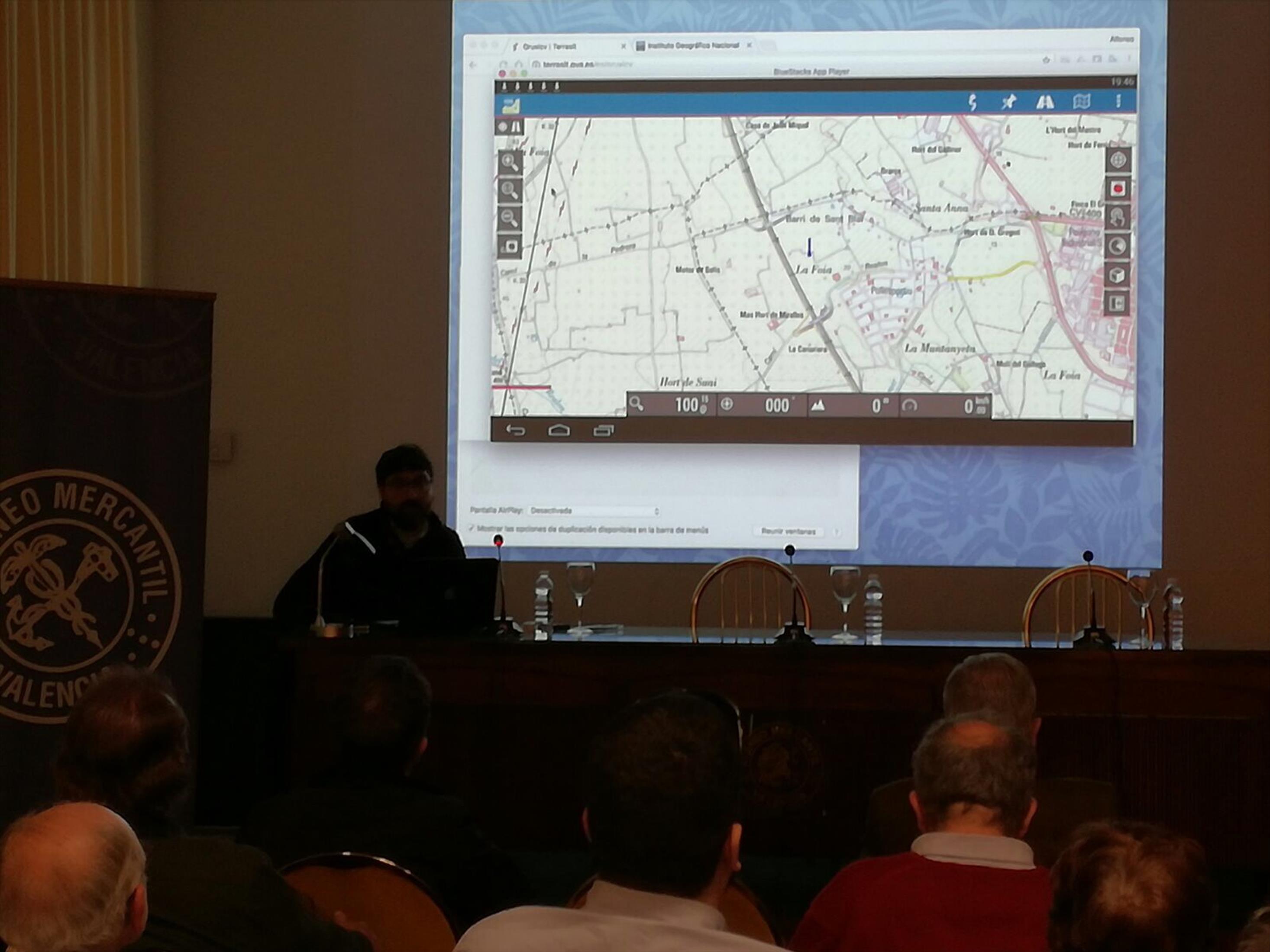 Este taller fue impartido por el profesor de la UPV Alfonso Moya Fuero, grado en Topografía y Geomática. Durante su exposición se fueron desgranando las posibilidades de las nuevas tecnologías geo y las aplicaciones cartográficas para móviles, tanto en sistema IOS, como en Android, desde la carga de mapas o cartografía offline, técnica de gran importancia y seguridad, no sólo porque se puede geolocalizar donde estés, incluso sin cobertura Internet, porque, según explicó el especialista, tienes mapa y además no consumes datos.