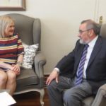 La presidenta del Ateneo Mercantil, Carmen de Rosa, el presidente de Feria Valencia, José Vicente González y el director general de Comercio, Nacho Costa, inauguraron este martes 24 de abril la exposición 'Cien años de Feria Valencia (1917-2017) a través de sus carteles' que realiza un recorrido histórico a través de los carteles más importantes a lo largo de sus 100 años de historia. La historia del Ateneo Mercantil y de Feria Valencia tiene una especial vinculación en el nacimiento del muestrario internacional, ya que la institución ateneísta fue una de las fieles impulsoras de la Feria en 1917.