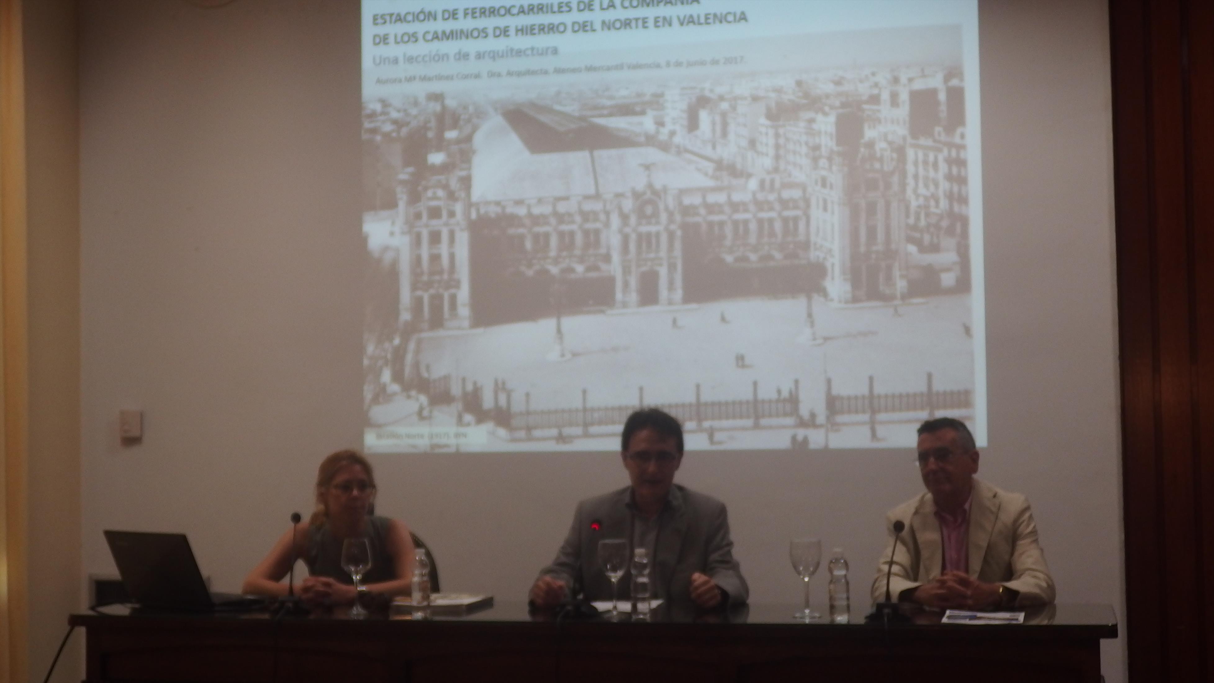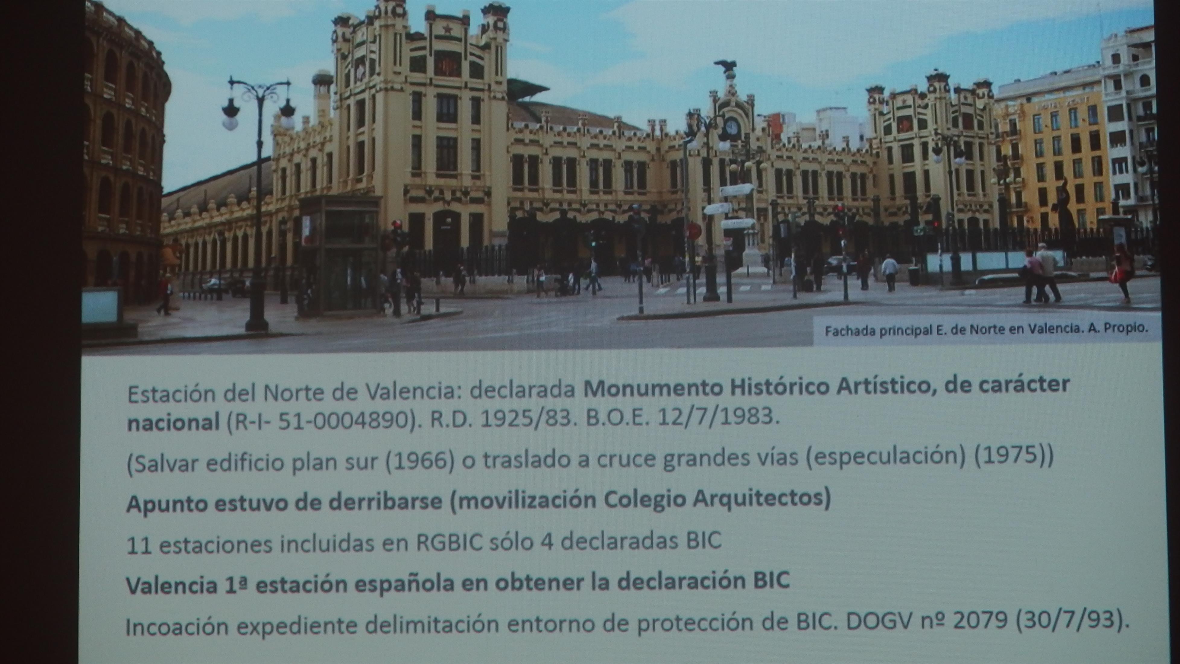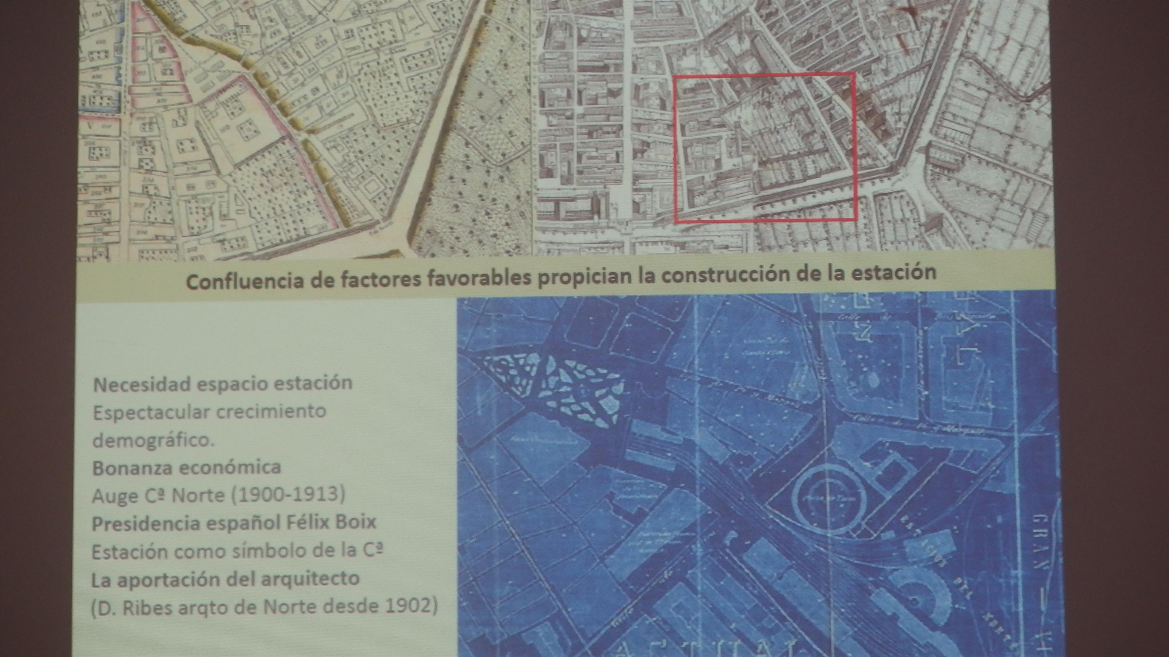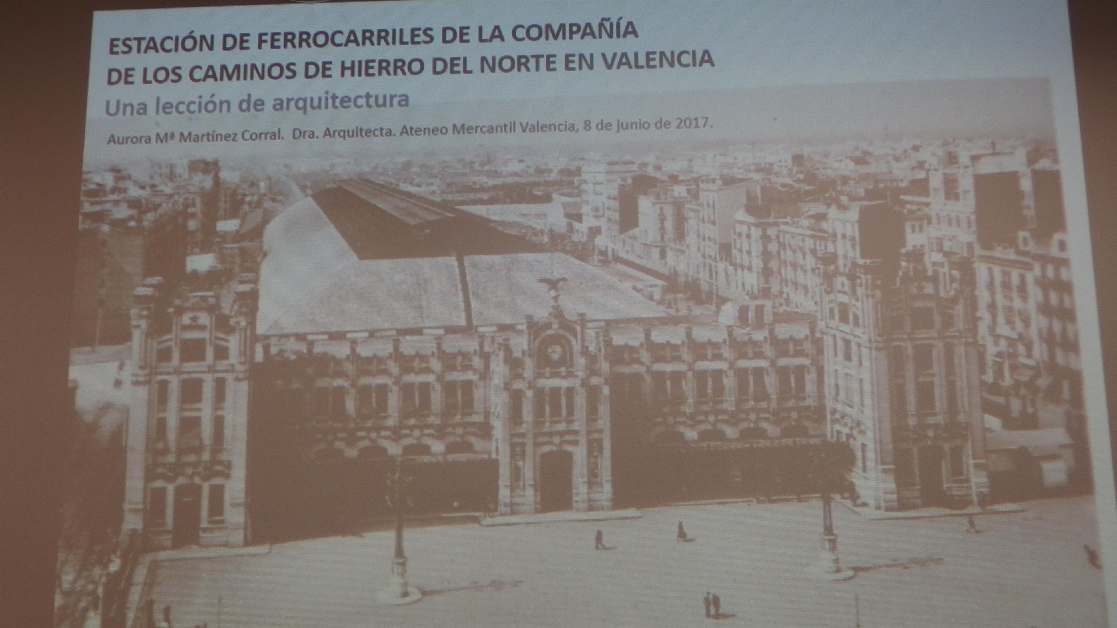 La conferencia de la Dra. Dña. Aurora Martínez Corral pretendió mostrar el proceso constructivo de la estación desde el proyecto hasta aquellos detalles originales que todavía quedan en el edificio de viajeros con mención de las pérdidas más relevantes que ha sufrido. Sin olvidar su valor inmaterial: la estación además de lo tectónico, también es receptáculo de la memoria. Fue testigo de numerosos acontecimientos históricos así como de otros valores inmateriales como la memoria del trabajo cuya preservación va asociada a la pervivencia de la pátina del edificio. Por último, el objetivo que se pretende es poner un granito de arena en la necesaria concienciación y estima por parte de los usuarios lo cual es garantía de preservación.