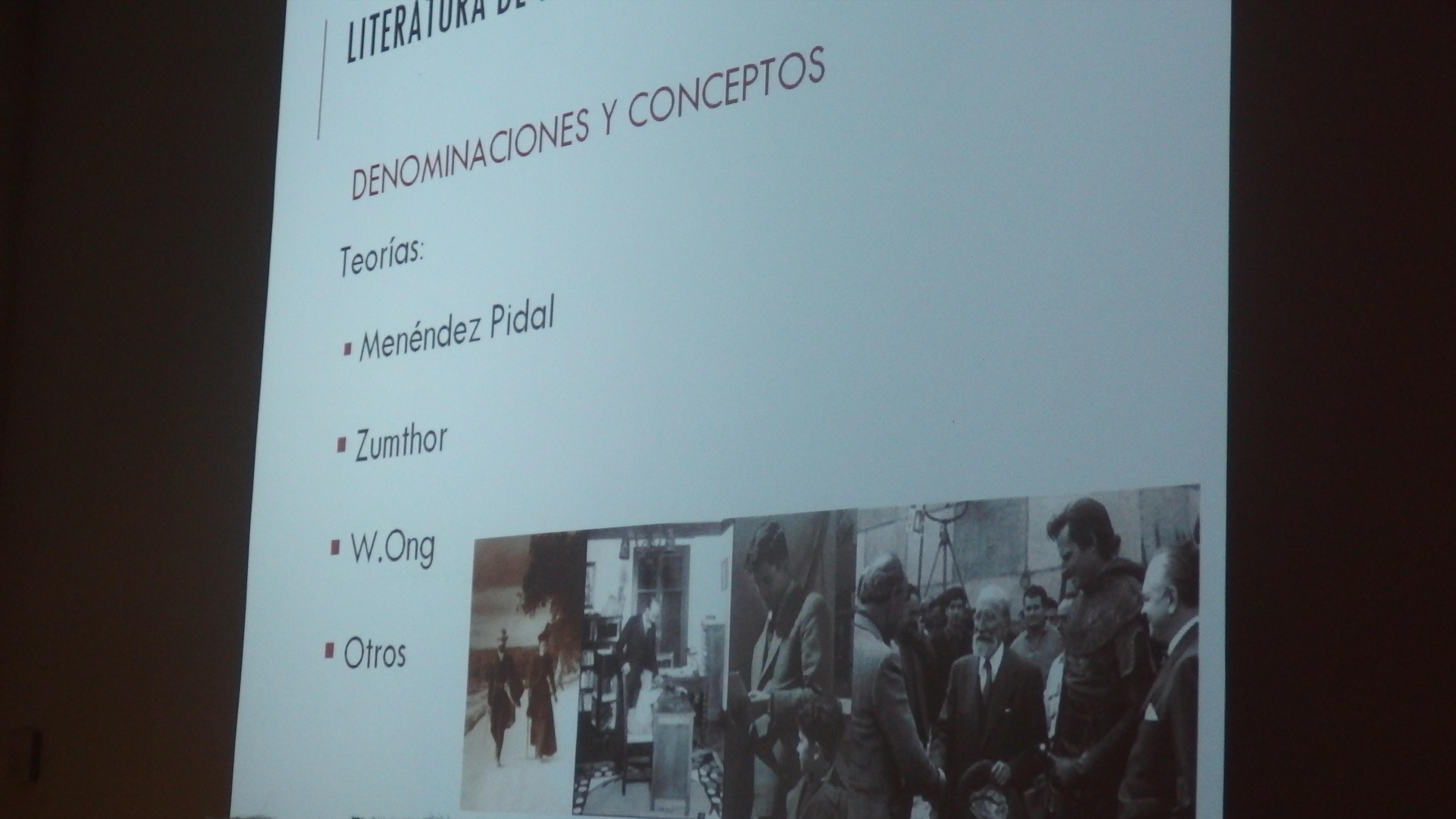 Se trató la conceptualización  de la oralidad y sus tipos, los rasgos de los textos orales (carácter fragmentario, sintaxis suelta y presencia de dialectalismos, vulgarismos, localismos, fórmulas recurrentes, etc.). Prestó una atención especial a la memoria como evocación de la familia, la escuela y el ambiente extraescolar y los recuerdos como regeneradores  de una literatura oral, que ahora sí se está perdiendo, a pesar de ser Patrimonio Intangible de la Humanidad  por la UNESCO.