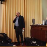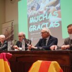 Al término de la conferencia, el moderador del acto D. José Luis Benlloch y el conferenciante Profesor Dr. D. Antonio María Mateo Gutiérrez, recibieron sendas réplicas del premio distinción, de manos del portavoz de la tertulia taurina, como recuerdo de su paso por el Ateneo Mercantil.