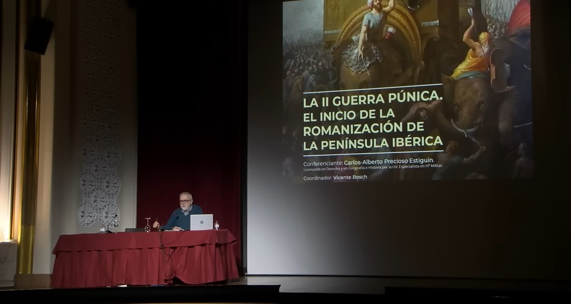 Carlos Precioso Estiguin, licenciado en Derecho y en Geografía e Historia por la UV y especialista en Historia Militar, nos desgranó cómo se fueron sucediendo los acontecimientos. En apenas unas décadas, Roma se asomó al Mediterráneo y se convirtió en amo de medio mundo. Pero para ello tuvo que enfrentarse a uno de los más grandes estrategas del mundo antiguo, Aníbal y a una potencia decidida a plantarle cara, Cartago.
