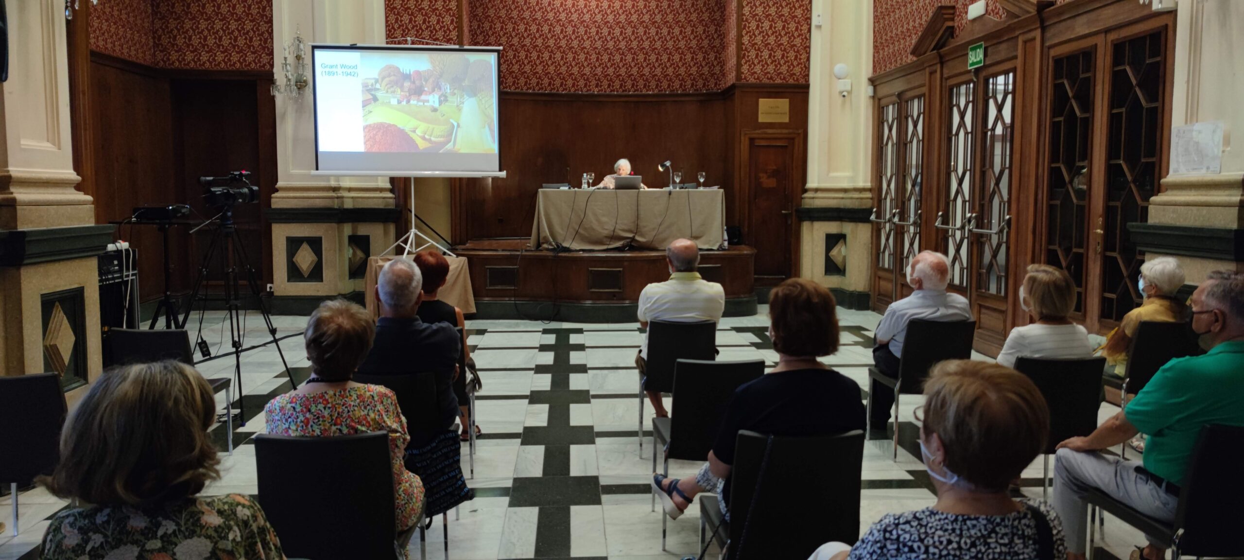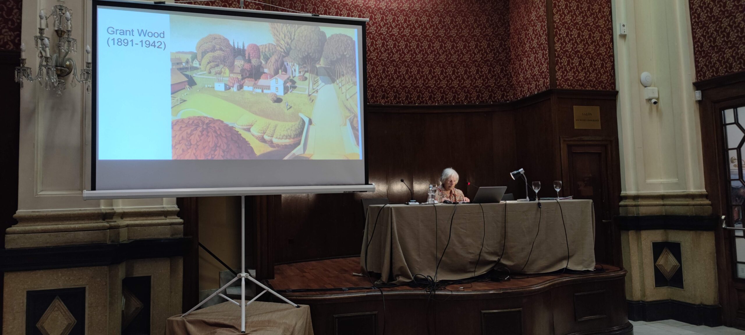 La conquista del Lejano Oeste trascendió a lo largo del siglo XIX su dimensión de acontecimiento histórico fundacional de los Estados Unidos de Norteamérica para convertirse en un mito universal, en el que la leyenda fue sustituyendo a la historia. La fascinación por los majestuosos paisajes inexplorados, las formas de vida y costumbres de las tribus indias y la exaltación de tramperos y cowboys se recogieron en un amplio elenco de obras de distintos géneros. Una evolución de la pintura que nos llevará, en esta primera conferencia hasta el American Gothic ("Gótico estadounidense"), cuya imagen idílica llega con la obra de Grant Wood de 1930, que se ha convertido en un icono en la cultura popular, siendo una de las imágenes del arte moderno estadounidense más reconocidas y parodiadas.