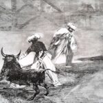 El 30 de marzo de 1746 nació Francisco de Goya en el seno de una familia que vivía en Zaragoza. La escasez de encargos oficiales y el renacer del mundo taurino después de la prohibición real de 1805 son razones que explican la realización de La Tauromaquia, serie de 33 grabados publicada en 1816 sobre un tema inocuo para la Inquisición. Destaca el dramatismo patético de las escenas que tratan de todos los tercios, y que encuentran inspiración en los comentarios de Joaquín Moratinos y Francisco Bruna.