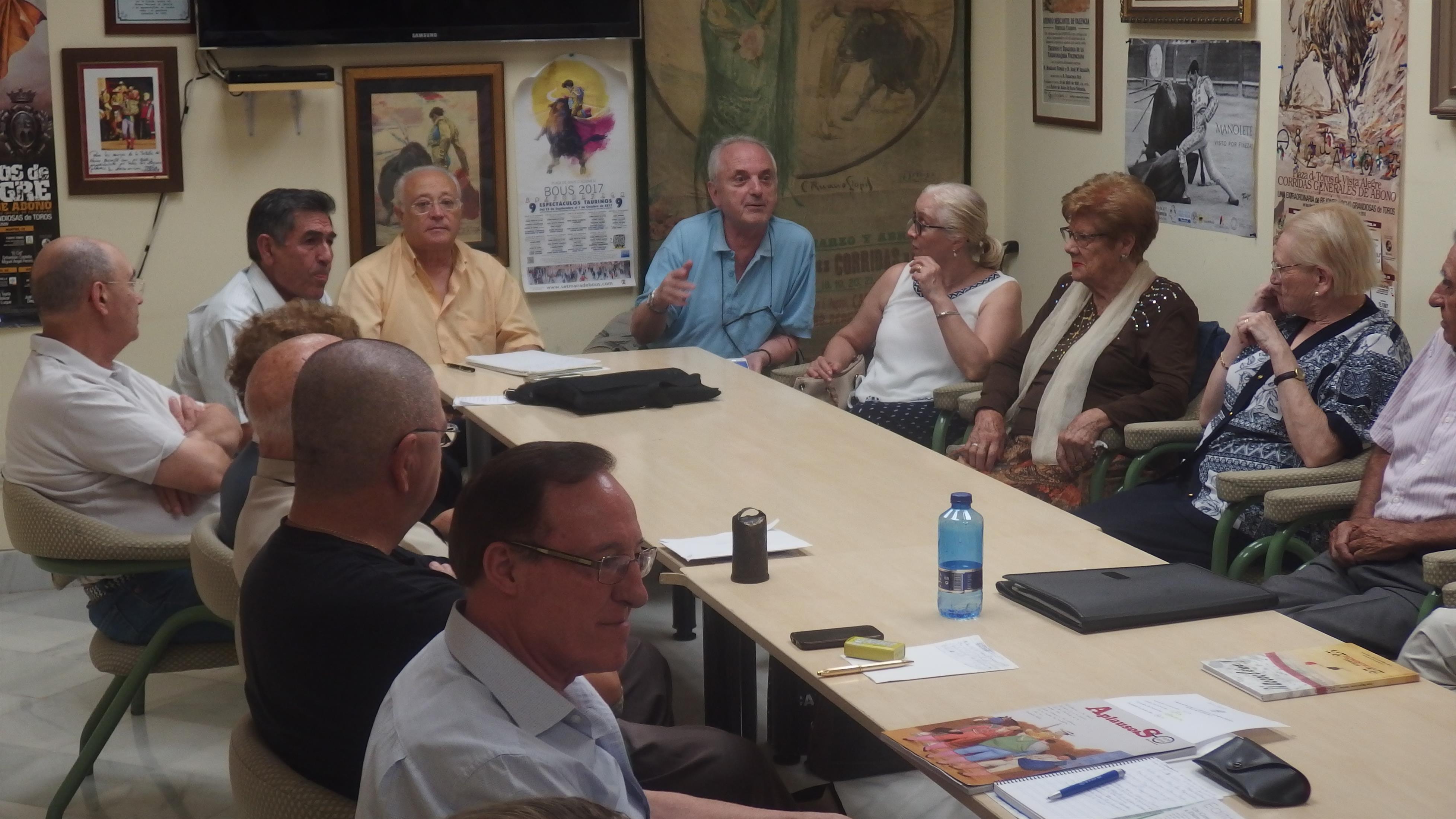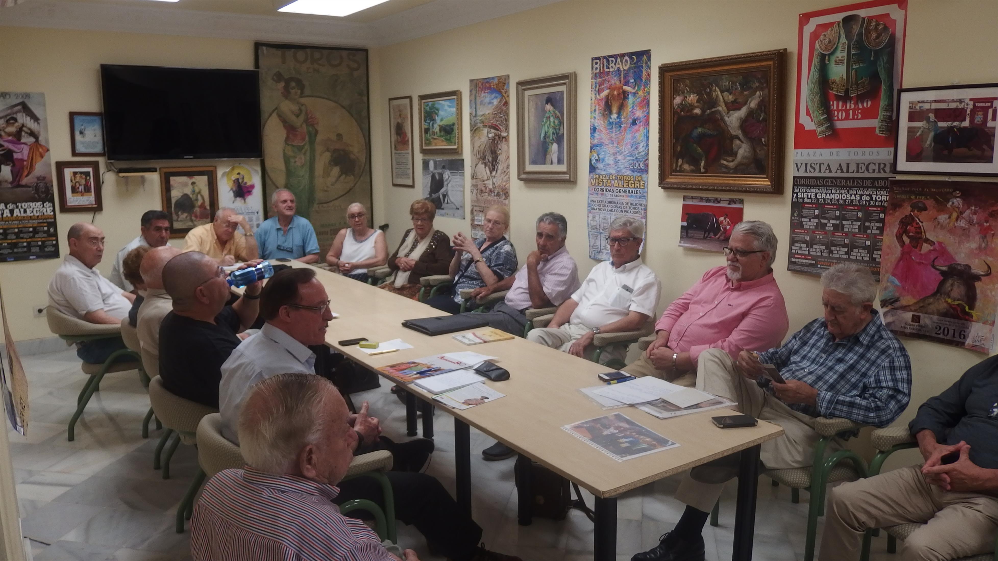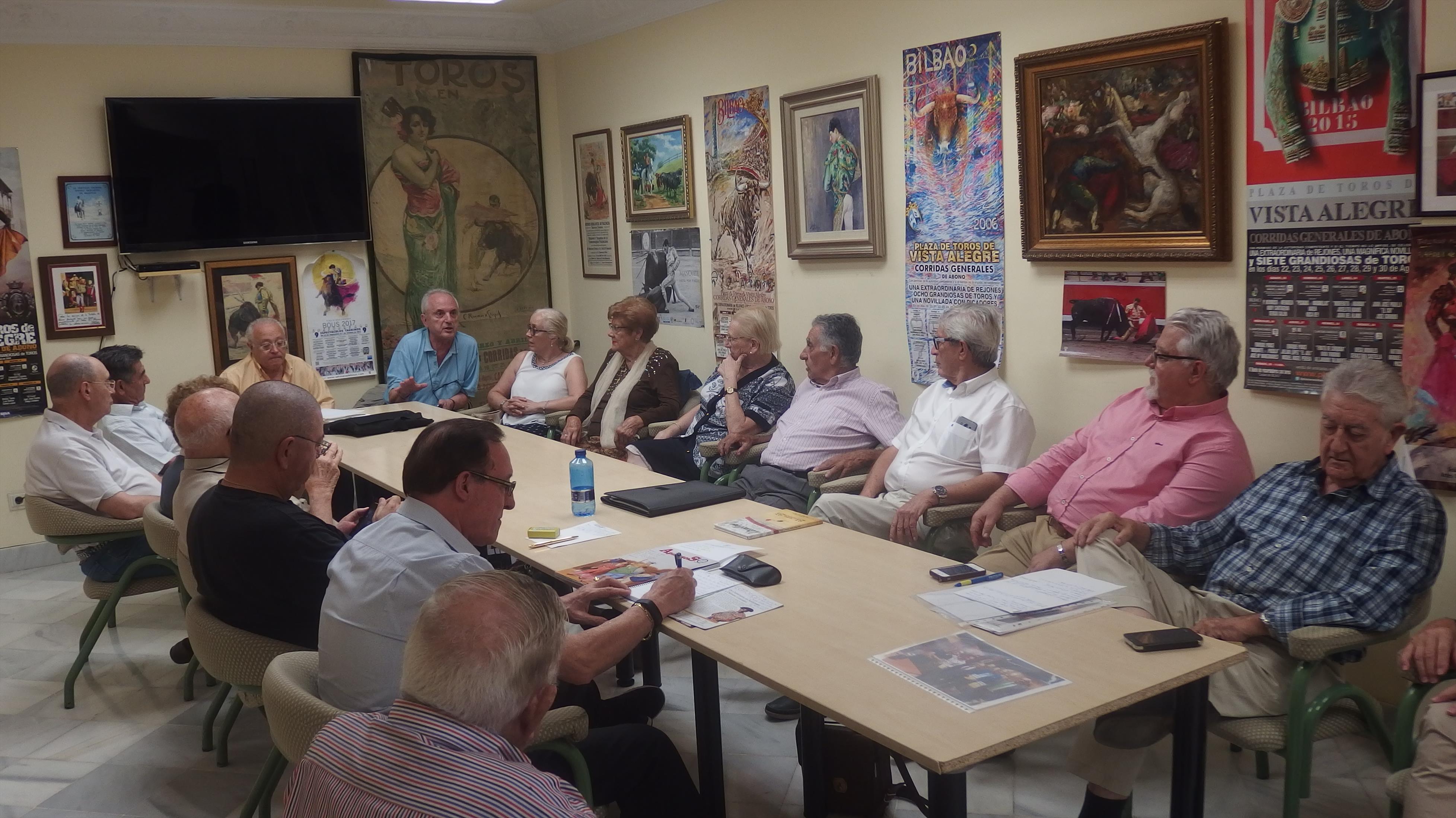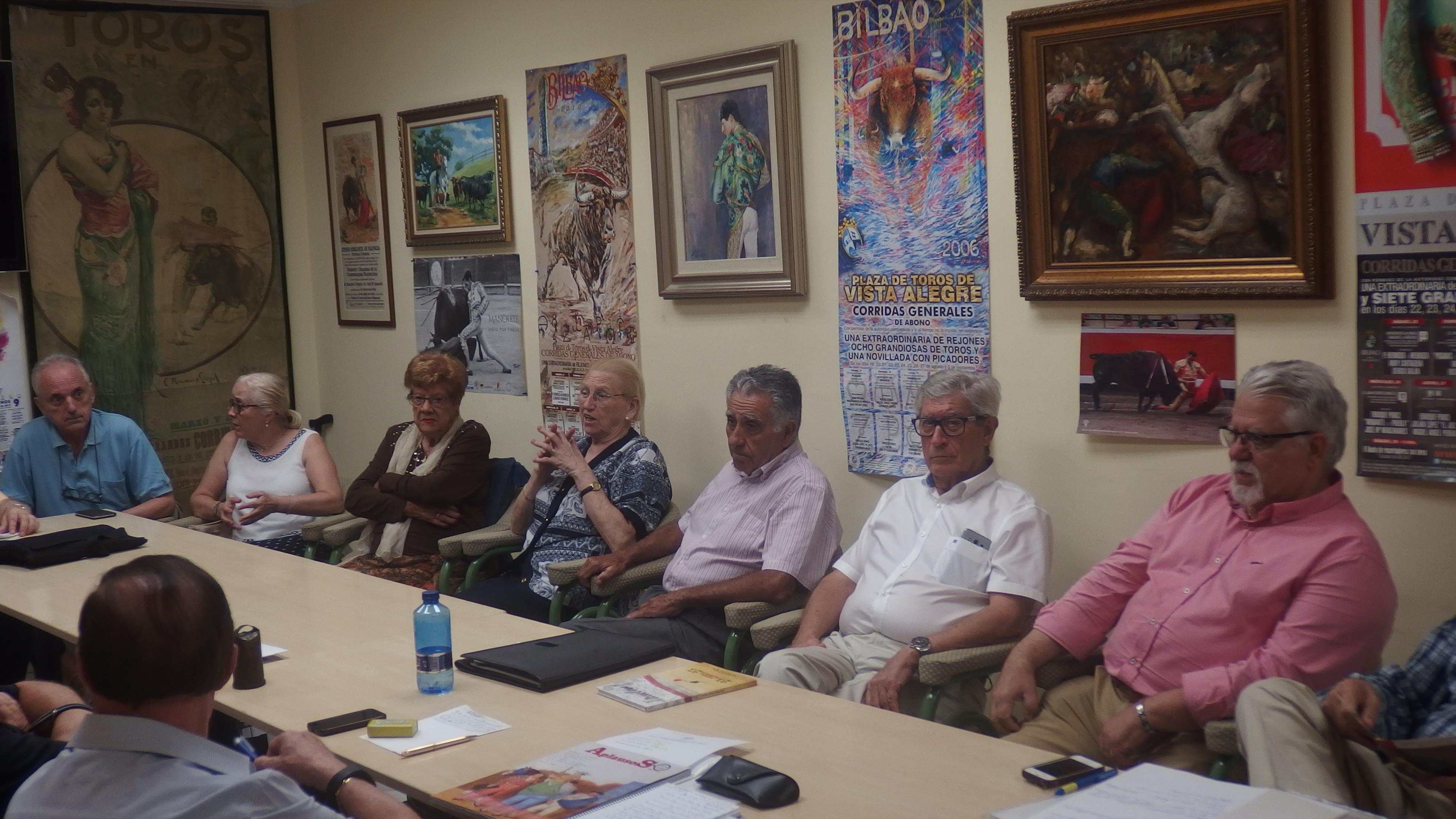 La primera sesión de la Tertulia Taurina de este curso comenzó con un minuto de silencio, en memoria del ganadero D. Victorino Martin, fallecido hace unos días; además, D. José Miguel Cartier, dio a conocer a los asistentes su libro de poesías Taurinas.