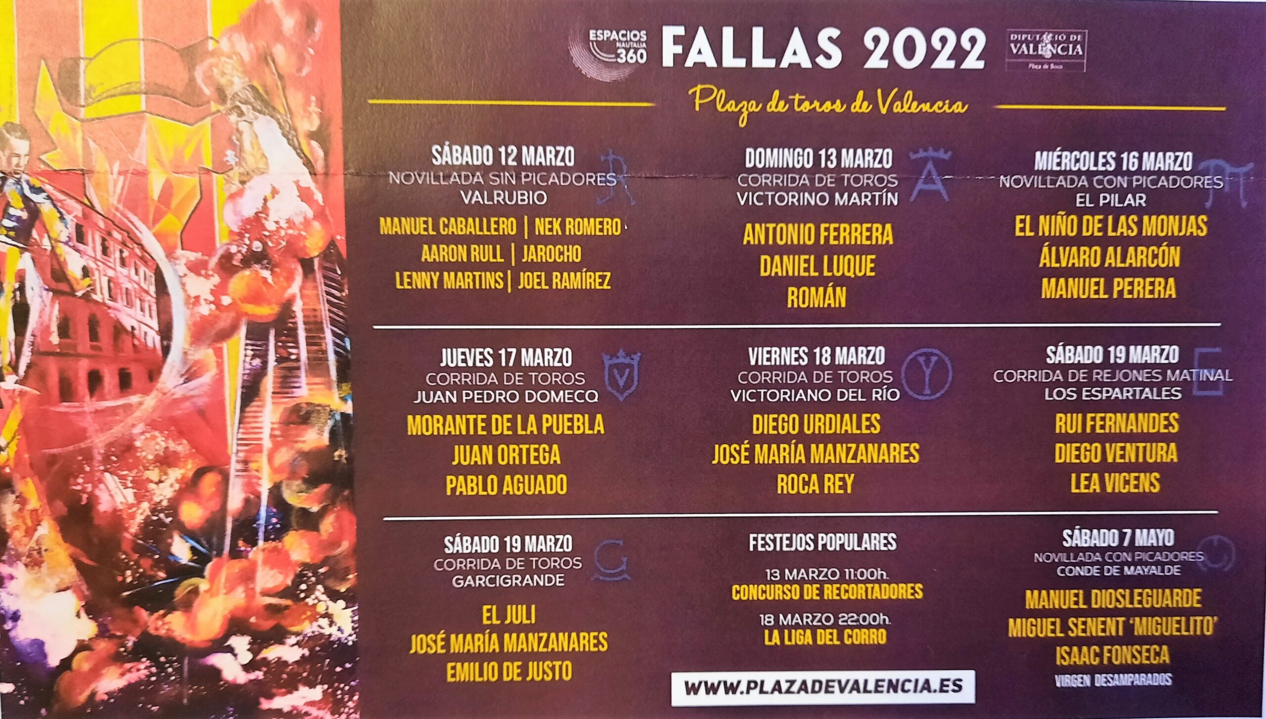 - Eel homenaje a Vicente Ruiz "El Soro" por sus 50 años de alternativa, organizado por Asuntos Taurinos de la Diputación de Valencia, que tendrá lugar el 14 de marzo y en el que se proyectará un documental de 75 minutos en el Salón de Actos del Ateneo Mercantil.