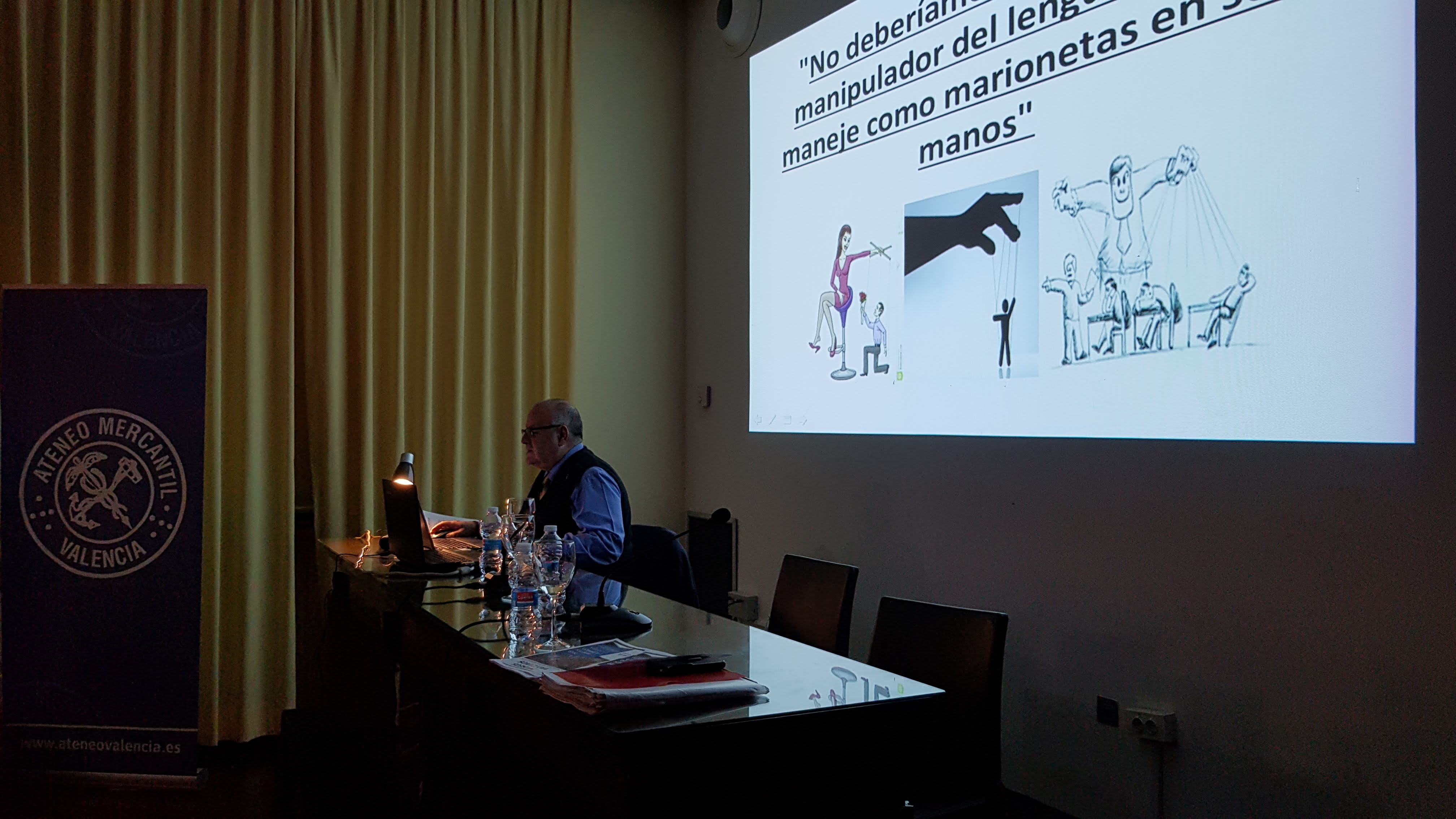 El pasado 5 de Marzo se impartió una conferencia por parte de D. Eduardo Climent que llevaba por título: "Cómo poner los puntos sobre las 'ies' para evitar la manipulación del lenguaje". Alrededor de 100 personas tuvieron la ocasión de conocer las estrategias que utiliza el manipulador del lenguaje para vencer sin convencer y dominar a las personas y a los pueblos, adquiriendo un poder político, económico cultural etc.