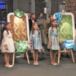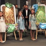 Arturo Torremocha y Juan Rodríguez, responsables del taller de L'Atelier de la Seda, empresa valenciana dedicada a la investigación y recuperación de tejidos para la indumentaria tradicional, fueron los amestros de ceremonias y de su mano fueron a compañando a las niñas hasta unos cuadros en los que se dejaban ver los dibujos y colores que vestirán en sus vestidos y además, dejaron ver dos dibujos de dos trajes que lucirán. Uno de mangas de farol, que ha sido bautizado como 'Cintia' y el dibujo de un segundo traje, del siglo XVIII, al que le han llamado 'Roser'.