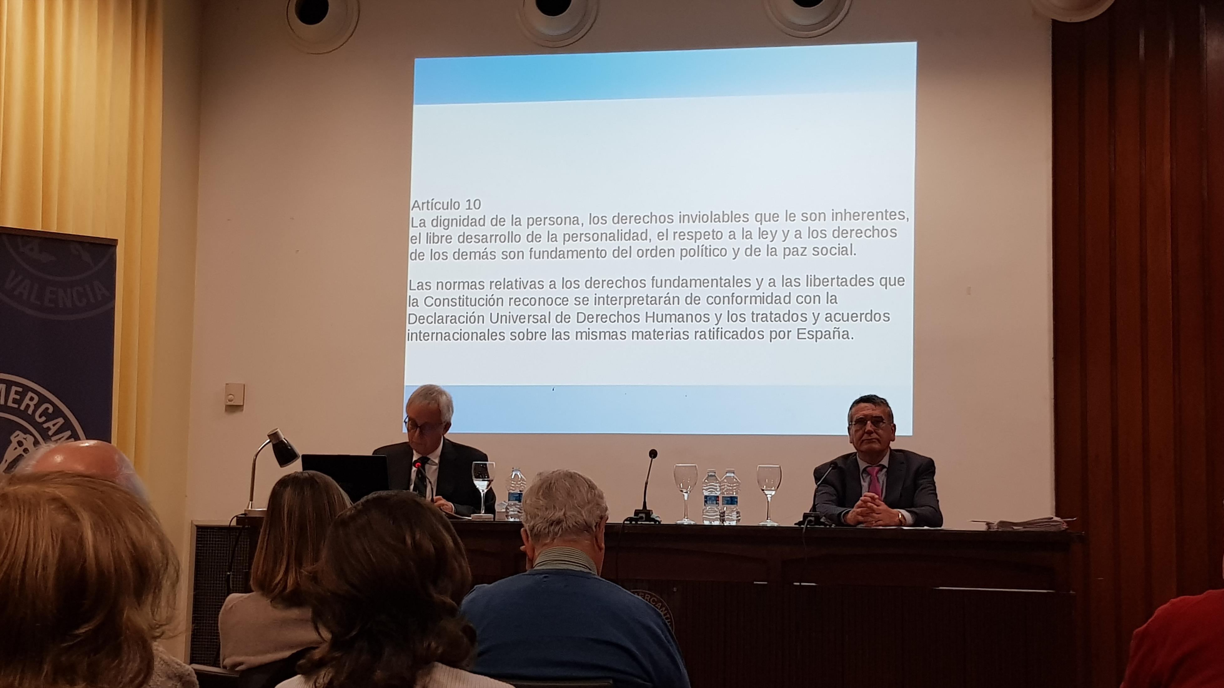 La conferencia sobre los Tribunales de Derechos Humanos la impartió el doctor en Derecho, licenciado en Criminología y presidente de la Sección 3ª de la Audiencia Provincial de Valencia desde diciembre de 2004, D. Carlos Climent Durán. Sin ir más lejos en Europa tenemos el Tribunal Europeo de Derechos Humanos (también denominado Tribunal de Estrasburgo y Corte Europea de Derechos Humanos) que es la máxima autoridad judicial para la garantía de los derechos humanos y libertades fundamentales en toda Europa.