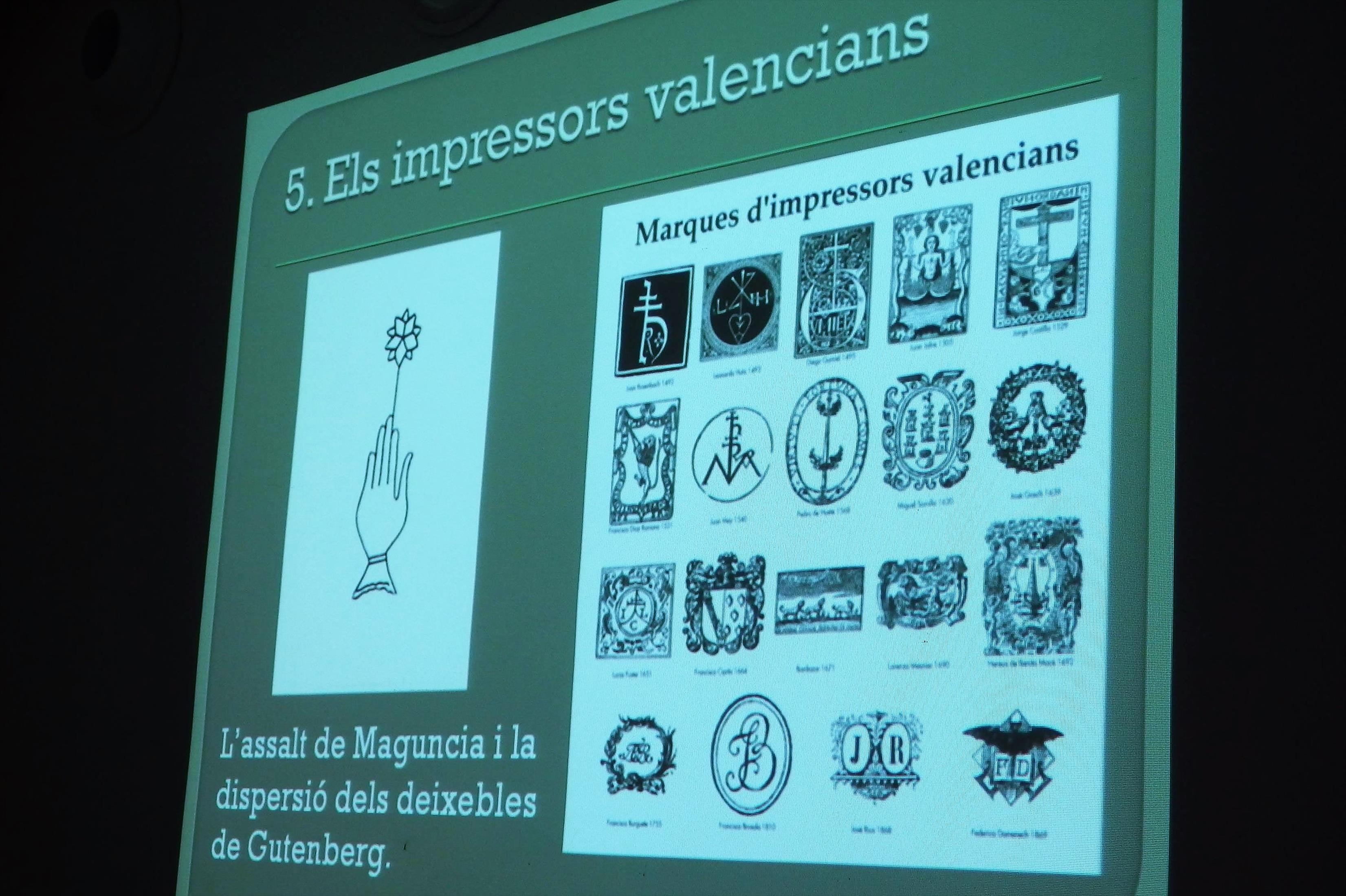 Valencia es la cuna de la imprenta española por tres motivos. En primer lugar, la tradición, por lo menos artesanal, de unas producciones valencianas emparentadas al mundo de imprenta y las artes gráficas. Por ejemplo, la impresión de naipes. La fabricación valenciana de juegos de cartas era tan relevante que los aficionados preferían los naipes de aquí por encima de otros sitios. Uno de los poetas incluídos en les Trobes……., Joan Sant Climent, era de profesión fabricante de naipes, y quien sabe si su consejo profesional no rompería las desconfianzas y prevenciones de quienes no eran partidarios de hacer uso del nuevo invento gutenbergiano para loar la Virgen. Pero también estaba la serigrafia era un sistema de estampación bien conocido por ciertos profesionales, por ejemplo los ceramistas, desde los tiempos de la dominación árabe. Las trepas y estarsits no solo servían para estampar sobre objetos ceràmicos o de uso doméstico sino tambien, evidentemente, sobre papel.