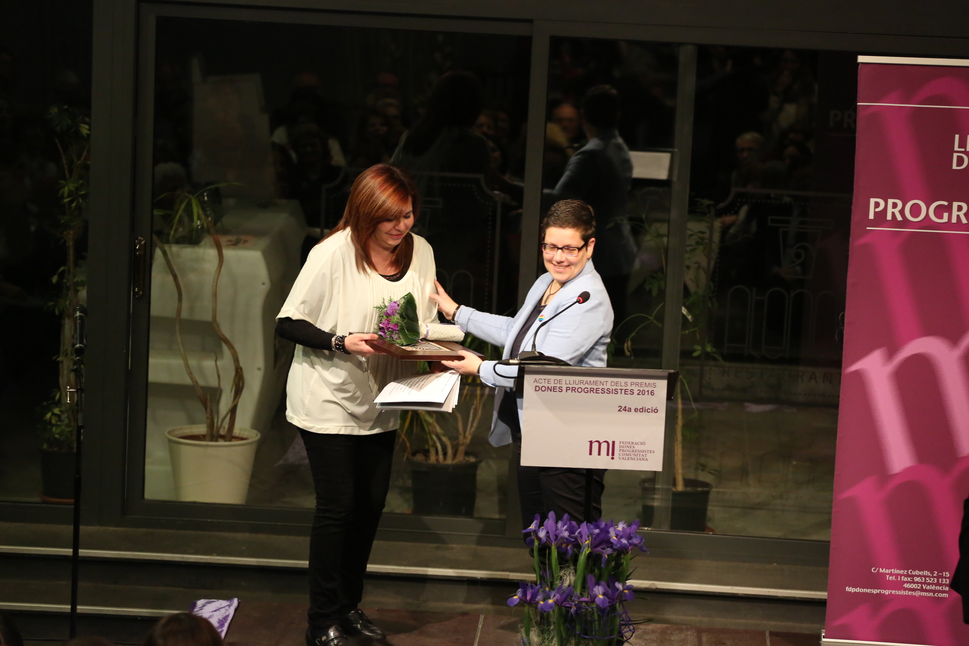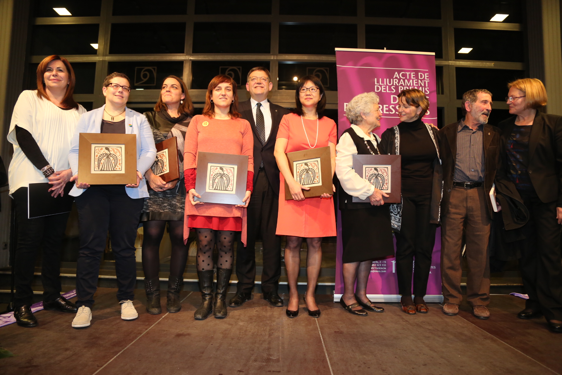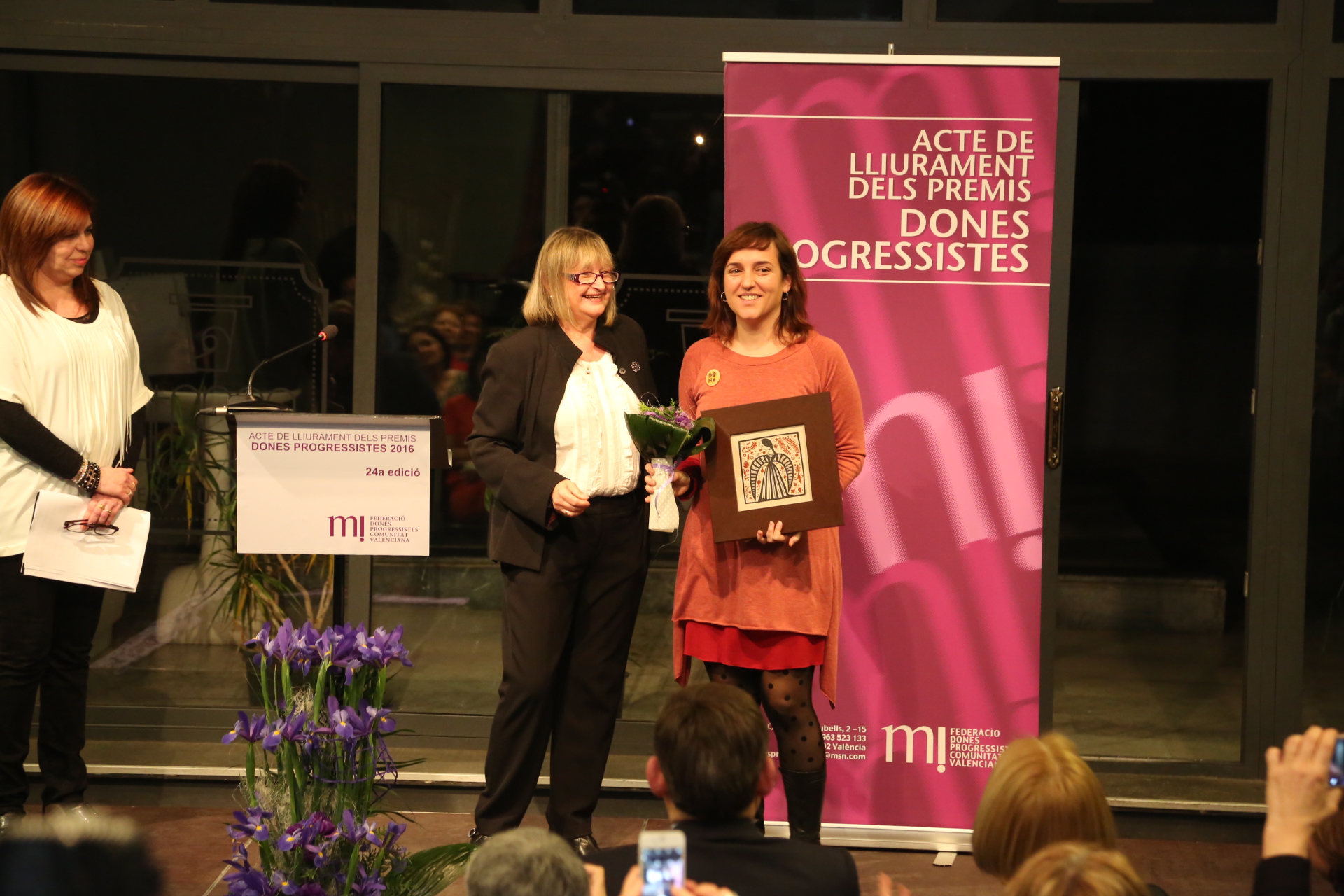 Este premio también fue entregado a Palmira Calvo, pionera de la escalada y montañismo en la Comunitat, "por su lucha vital por la igualdad, su talante de librepensadora y naturista, así como por su amor a la libertad, la cultura y la justicia social". Otro de los galardones premió la igualdad en las instituciones valencianas del cambio y fue para la directora general del Institut Valencià de les Dones i per la Igualtat de Gènere, Anaïs Menguzzato, la diputada de Igualdad de la Corporación Provincial, Isabel García, y a Isabel Lozano concejala de Igualdad y Políticas Inclusivas en el Ayuntamiento de Valencia. Este premio reconoció el "giro decisivo en los gobiernos y en las políticas de Igualdad después de décadas de inmovilismo popular".