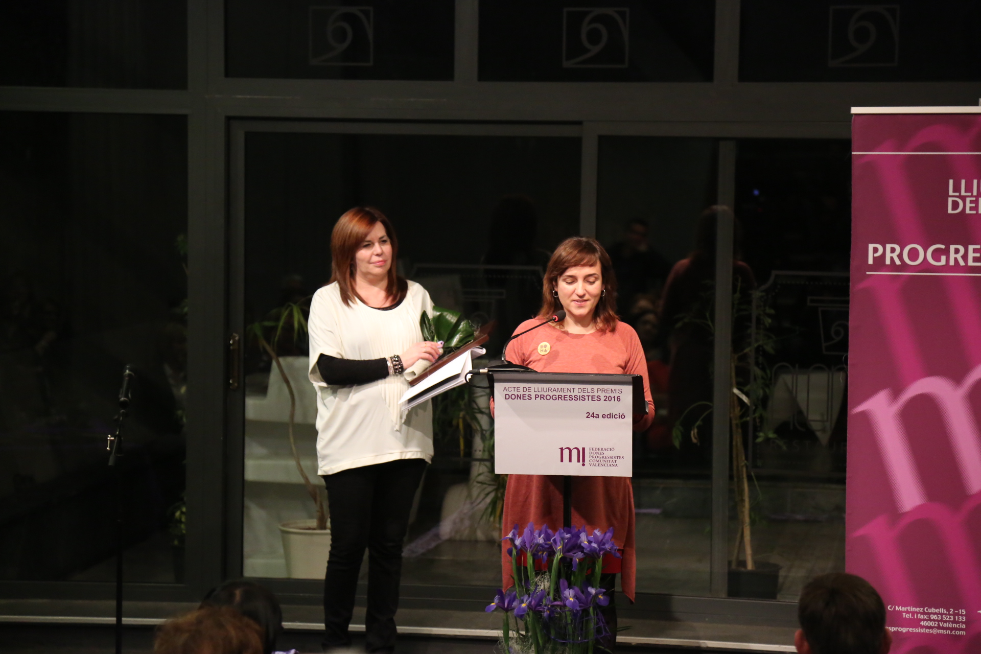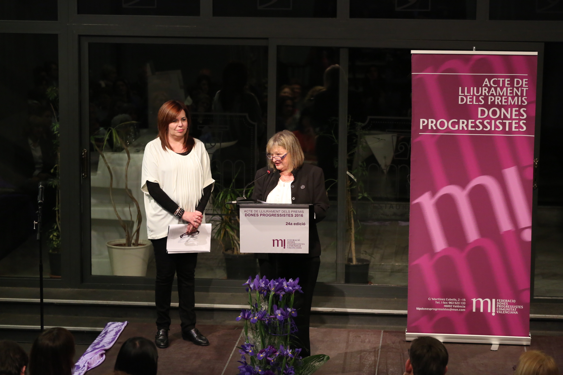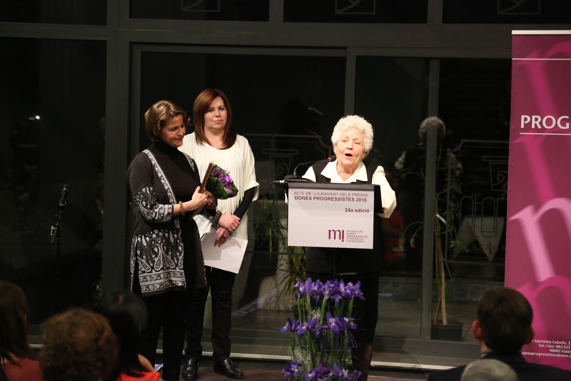 Este premio también fue entregado a Palmira Calvo, pionera de la escalada y montañismo en la Comunitat, "por su lucha vital por la igualdad, su talante de librepensadora y naturista, así como por su amor a la libertad, la cultura y la justicia social". Otro de los galardones premió la igualdad en las instituciones valencianas del cambio y fue para la directora general del Institut Valencià de les Dones i per la Igualtat de Gènere, Anaïs Menguzzato, la diputada de Igualdad de la Corporación Provincial, Isabel García, y a Isabel Lozano concejala de Igualdad y Políticas Inclusivas en el Ayuntamiento de Valencia. Este premio reconoció el "giro decisivo en los gobiernos y en las políticas de Igualdad después de décadas de inmovilismo popular".