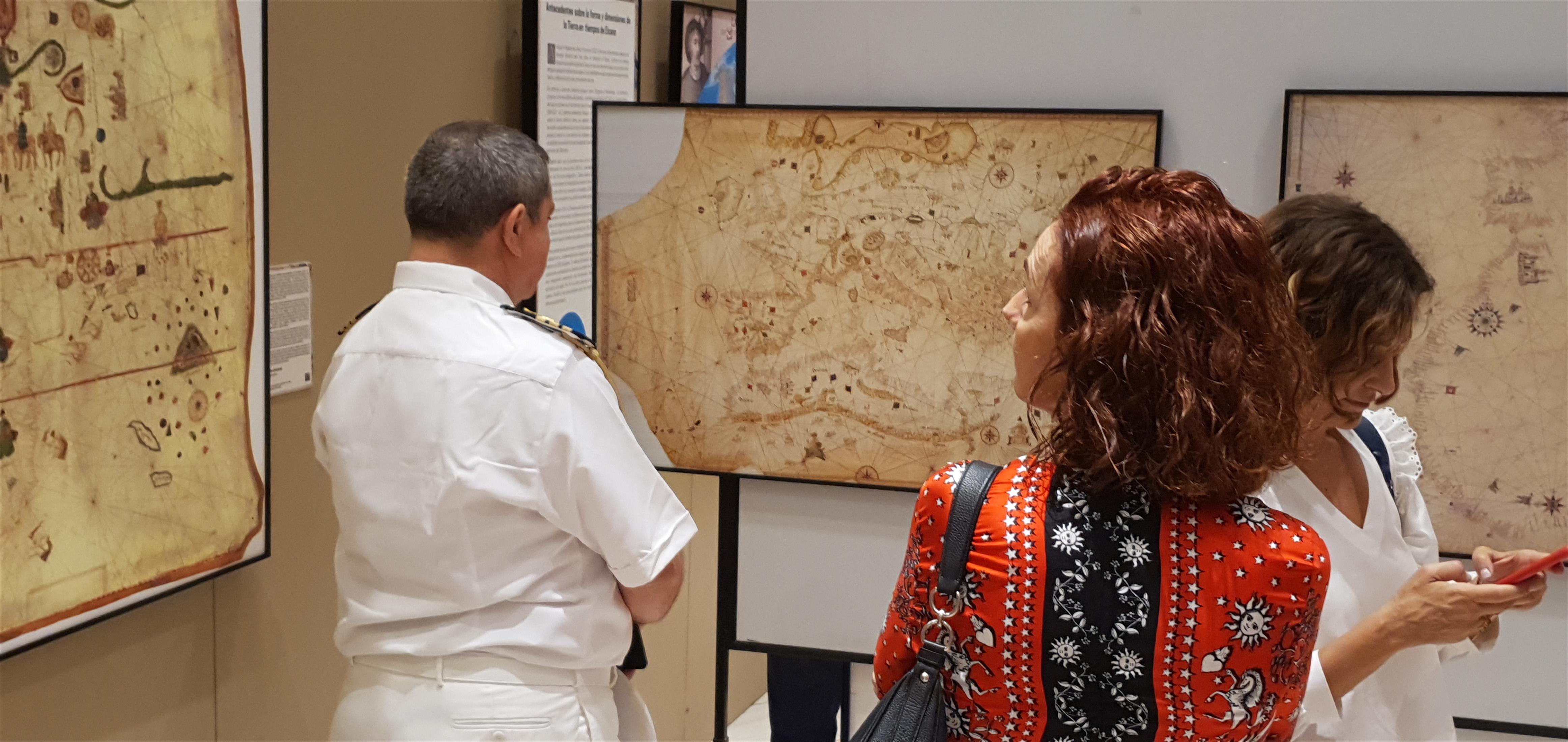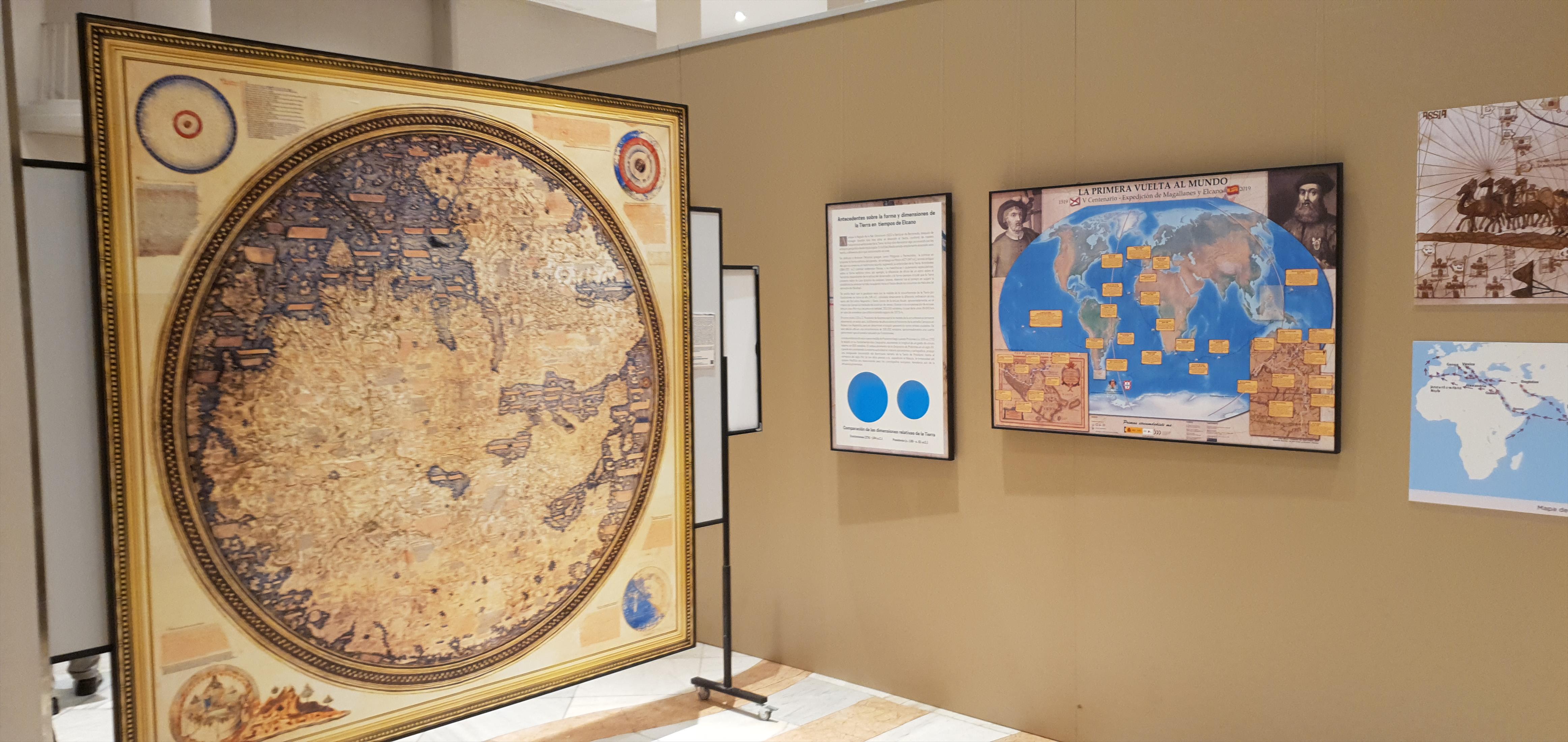 En total hay 35 reproducciones de mapas de la época gracias a la colaboración con el Instituto Geográfico Nacional del Ministerio de Fomento. Entre la cartografía señalar el Framauro a la entrada y el Juan de la Cosa.