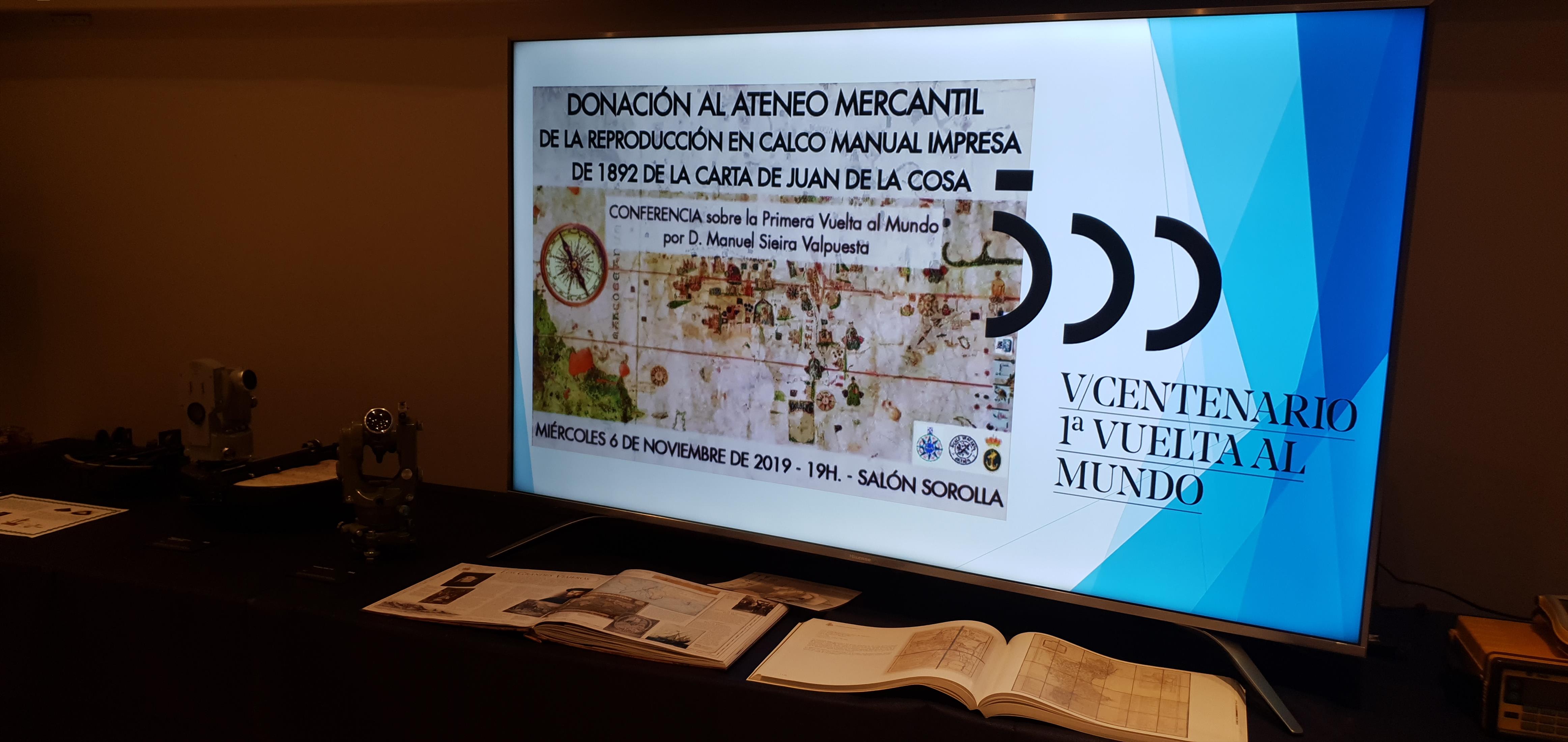 La sexta conferencia (6 de noviembre, 19h.) destacará "La Carta de Juan de la Cosa", estará dirigida por Manuel Sieira Valpuesta, economista, oficial de la Armada y miembro de la Junta Directiva de la M.N.U. Esa tarde se hará entrega al Ateneo Mercantil de una reproducción impresa en 1892 de la Carta de Juan de la Cosa. La última conferencia programada será "El Viaje a las Islas de la Especiería" (7 de noviembre, 19h.) y la dará el biólogo Juan Ors.