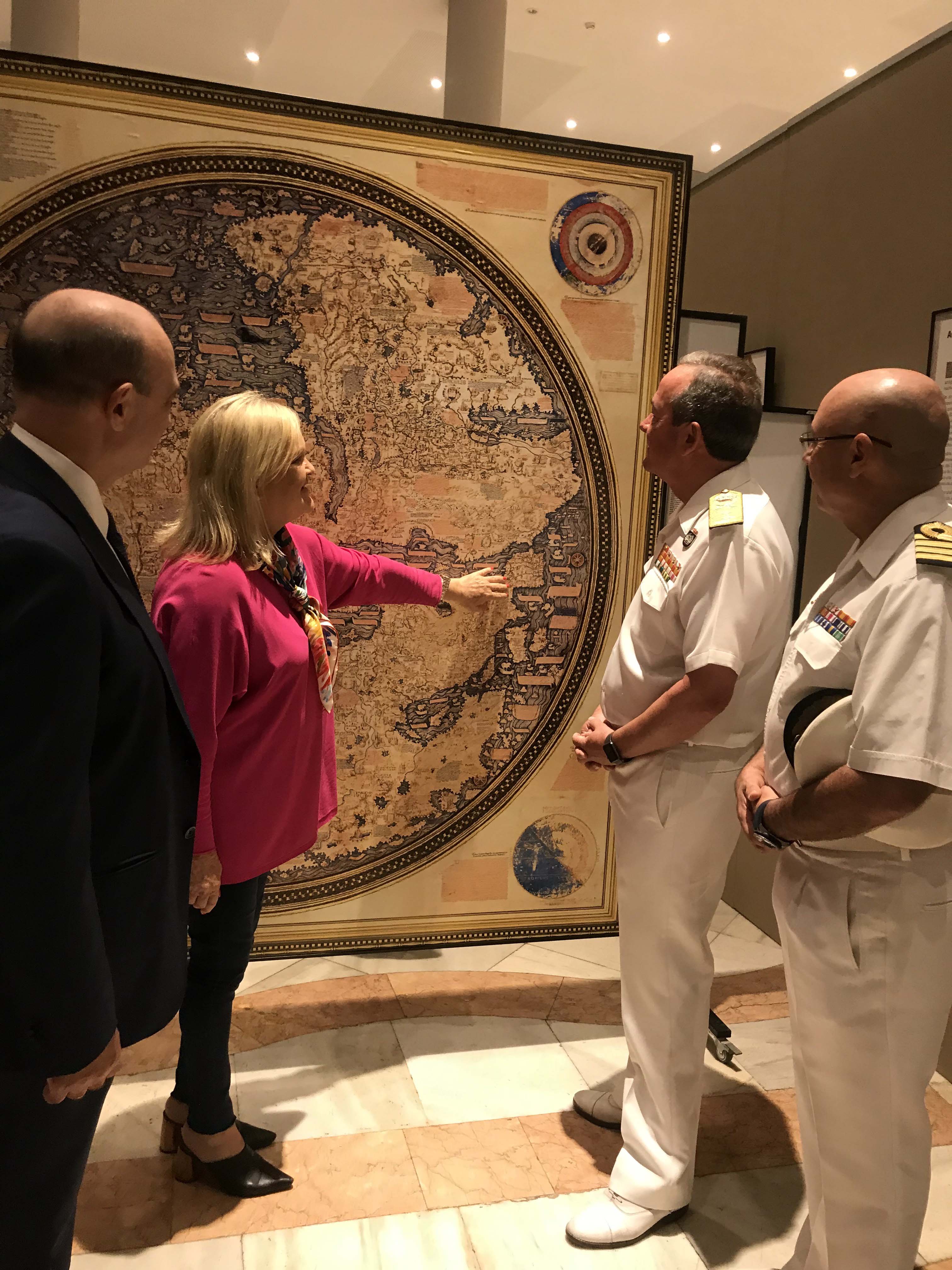 Carmen de Rosa ha comentado algunas de las curiosidades de la exposición, "como el mapa Framauro, en el que España está al revés porque los árabes se orientaban con el Sur" añadiendo "el interés de los mapas mentirosos, por ejemplo el Mapa de las Indias Orientas del Atlas Miller, donde se muestra cómo creían los portugueses que eran las islas Molucas y debajo el mapa real de cómo son las islas".